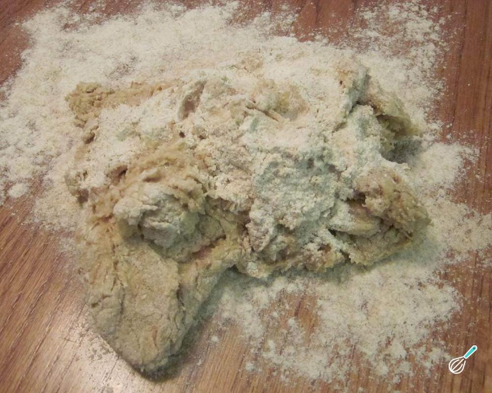 Dica: Se necessário, polvilhe a massa com um pouco de farinha para evitar que grude.