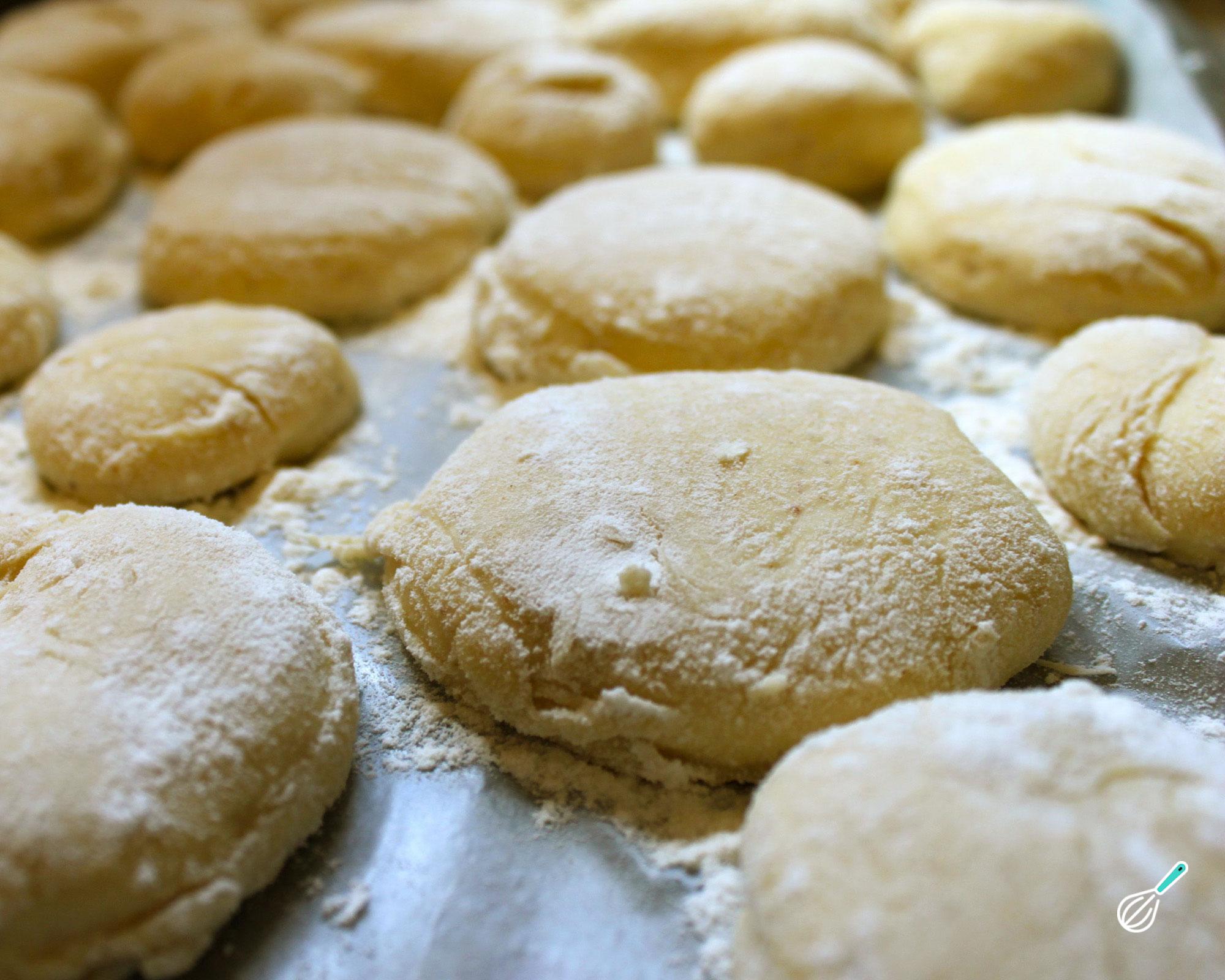 Deixe a massa estendida levedar entre 2 a 3 horas. Depois forme bolinhas com a massa, espalme as bolinhas e coloque-as numa chapa bem quente (eu usei o meu grelhador elétrico com a chapa lisa).