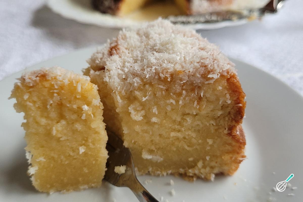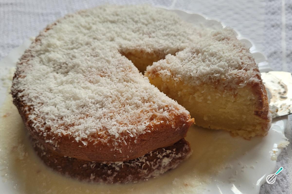 Nada melhor do que um bolo molhadinho, né? O bolo embriagado - também conhecido como toalha felpuda - combina uma massa leve com uma calda de leite condensado e leite de coco e ainda é coberto por coco ralado.