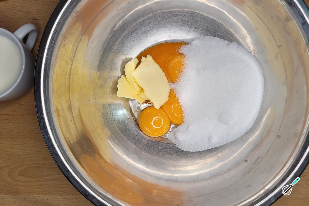 Junte o açúcar e a manteiga amolecida às gemas.