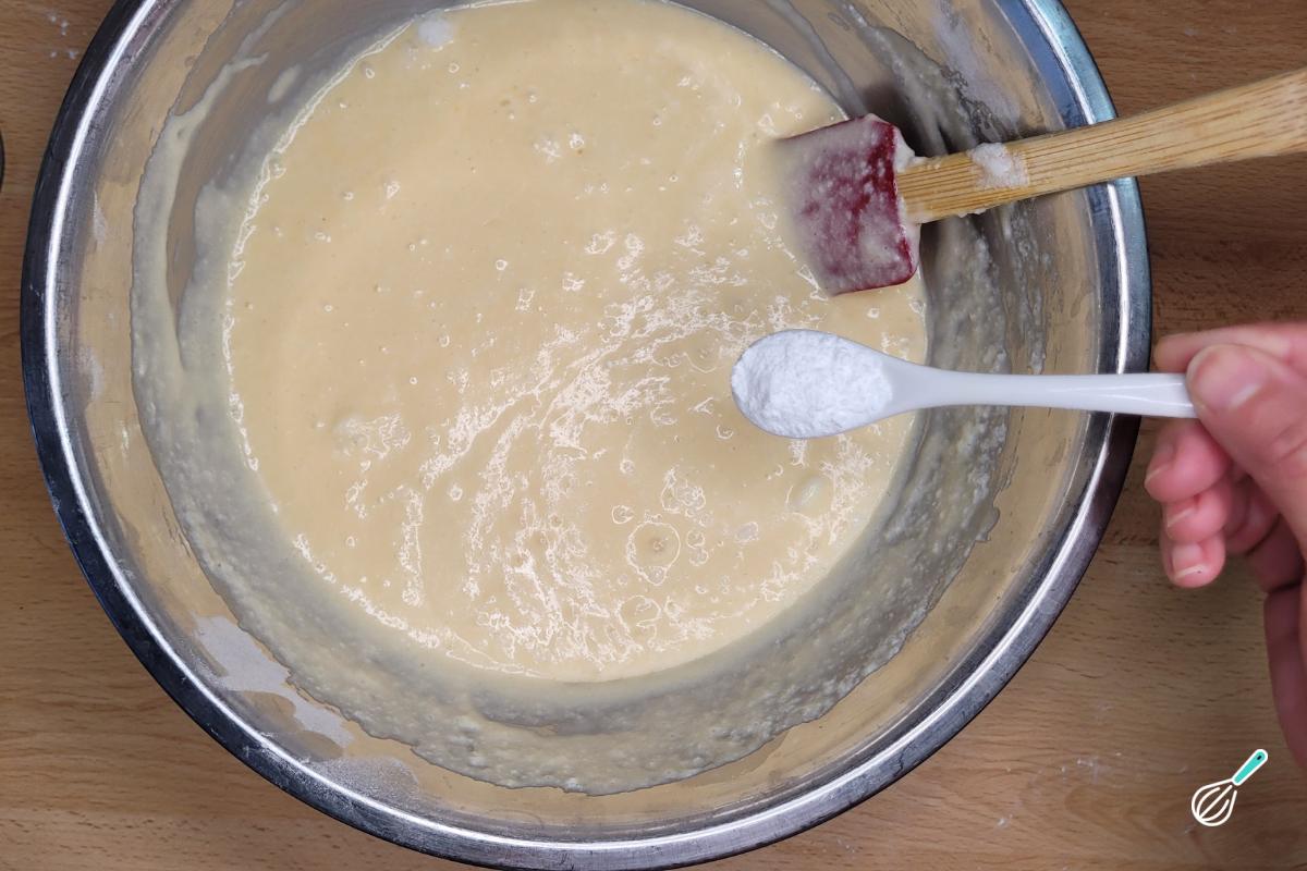 Por último, acrescente o fermento e misture suavemente.