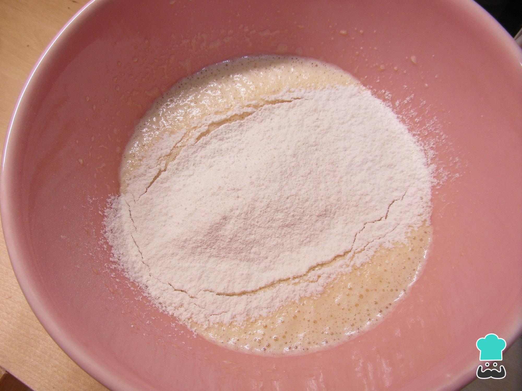 Em seguida, adicione a farinha pouco a pouco, juntamente com o fermento em pó, e alternando com o leite.