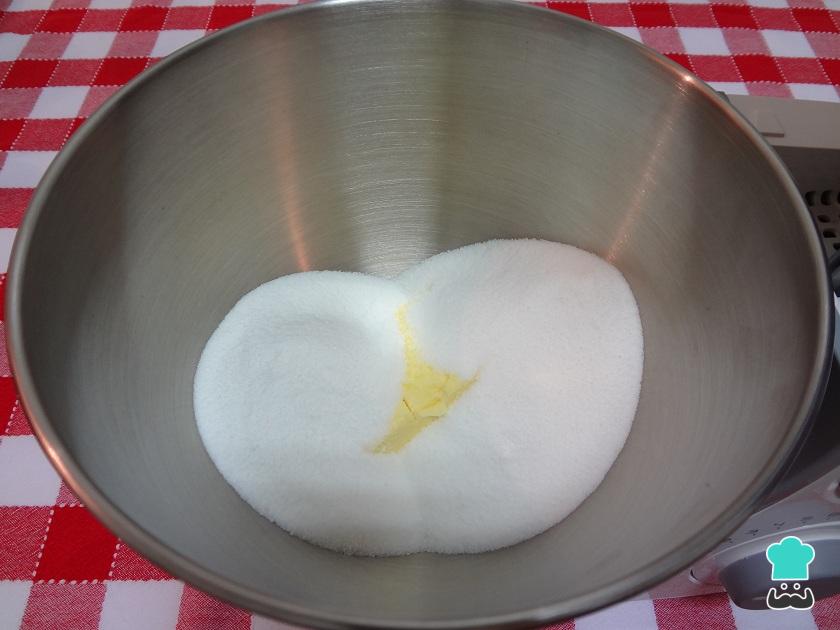 O primeiro passo para preparar seu bolo formigueiro é bater muito bem o açúcar com a manteiga.