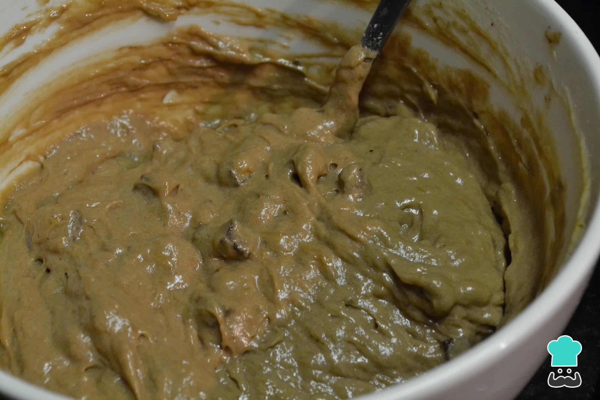 Quando tiver obtido uma massa de bolo de banana homogênea, ou seja, sem grumos, adicione os restantes ingredientes (incluindo o fermento) e mexa somente para incorporar.