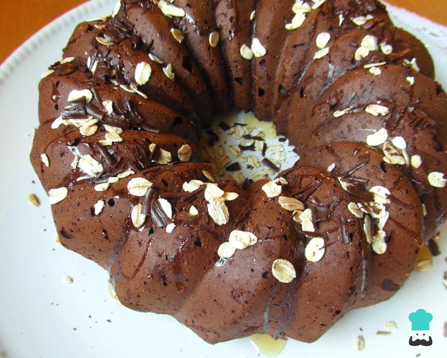 Depois de assar espere que o bolo integral com aveia e cacau esfrie um pouco antes de desenformar. Decore com fios de mel, flocos de aveia e raspas de chocolate e confira como é delicioso!