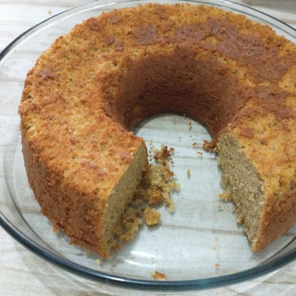 Retire o bolo integral de laranja do forno e espere esfriar um pouco antes de desenformar. Está pronto! Sirva simples assim ou com calda de laranja e bom apetite.
