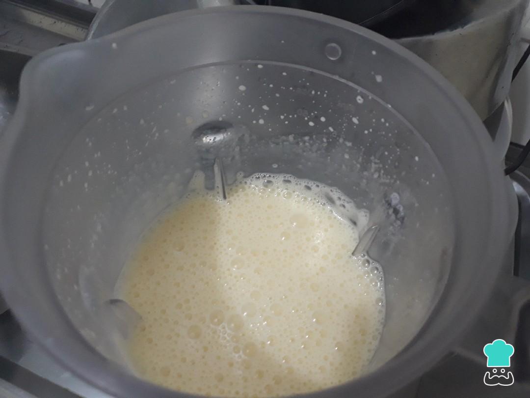 Comece por bater no liquidificador os ovos, o leite e o óleo por 3 minutos. Adicione o açúcar e bata por mais 1 minuto.
