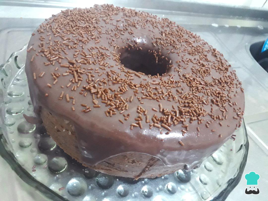 Quando o bolo estiver assado, retire do forno e espere esfriar por 30 minutos. Desenforme e cubra com o brigadeiro - pode utilizar chocolate granulado para finalizar!