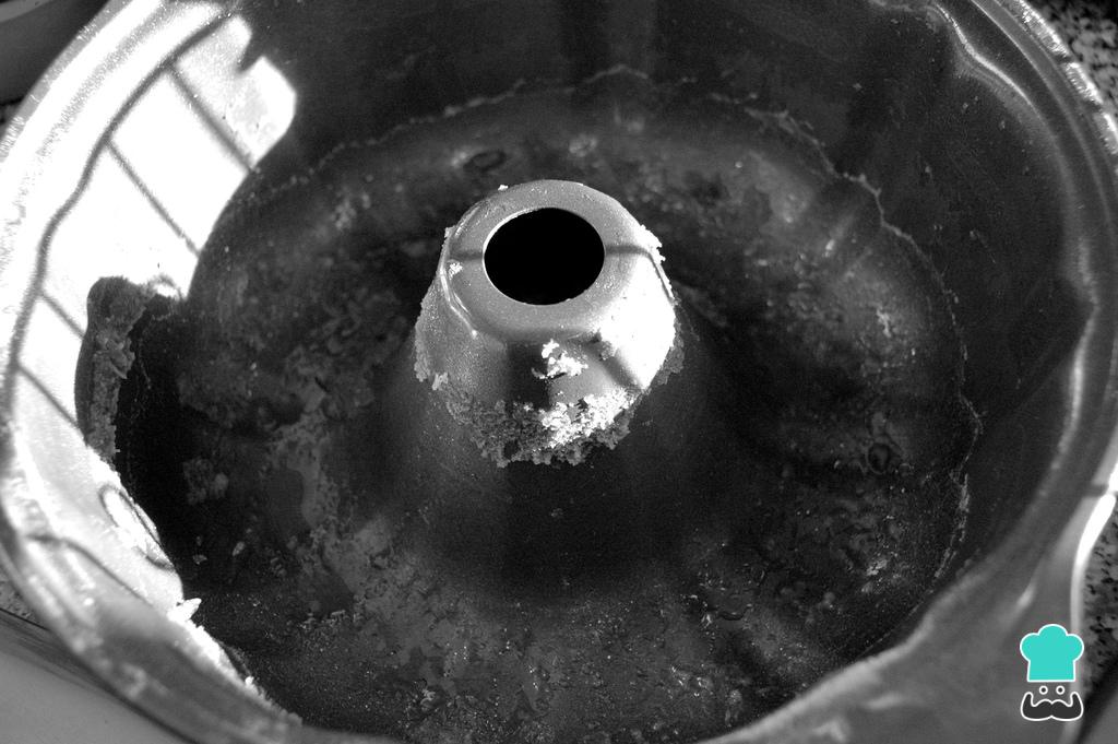 Unte uma forma de bolo com manteiga ou óleo e enfarinhe. Pode usar uma forma com ou sem furo central, retangular, de pudim, como preferir. Coloque aí a massa do bolo de leite.