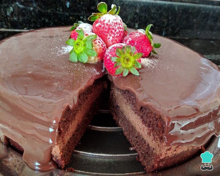 Bolo de chocolate já é uma delícia! Com mousse de chocolate e cobertura de brigadeiro fica muito mais gostoso. Por isso aqui no TudoReceitas mostro para você como fazer bolo de chocolate recheado com mousse de chocolate e decorado com morangos. Uma deliciosa combinação que vai deixar todos de água na boca!