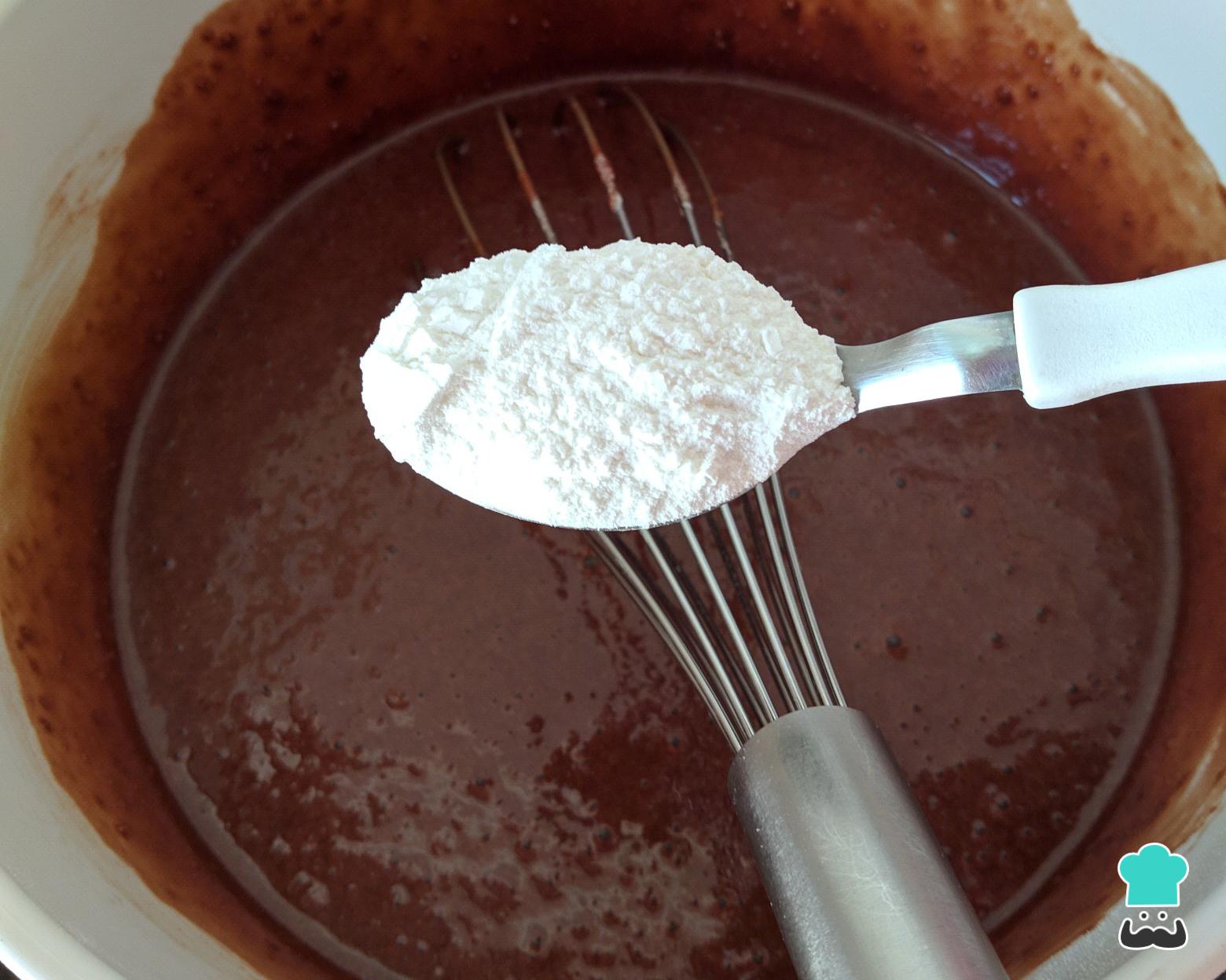 Agora peneire a farinha de trigo na mistura anterior e mexa até a massa ficar homogênea e sem grumos.