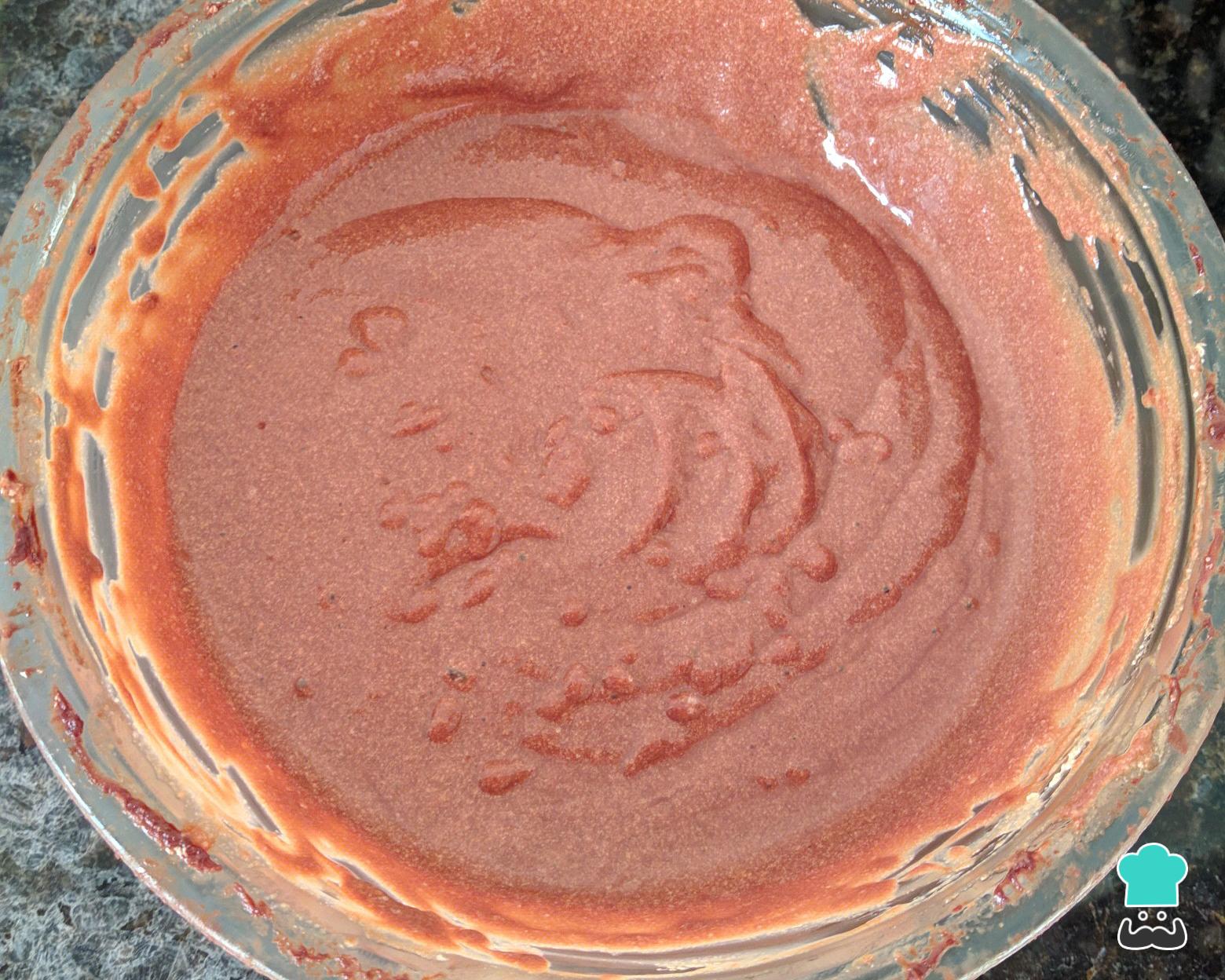 Feito isso, despeje a mistura em um recipiente. Ela deverá ser lisinha e com todos os ingredientes bem misturados - se necessário, use uma colher para misturar melhor.