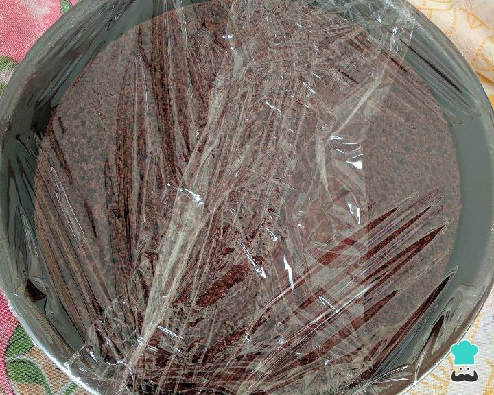 Depois coloque a outra metade da massa, cubra com plástico filme e leve para a geladeira de um dia para o outro.