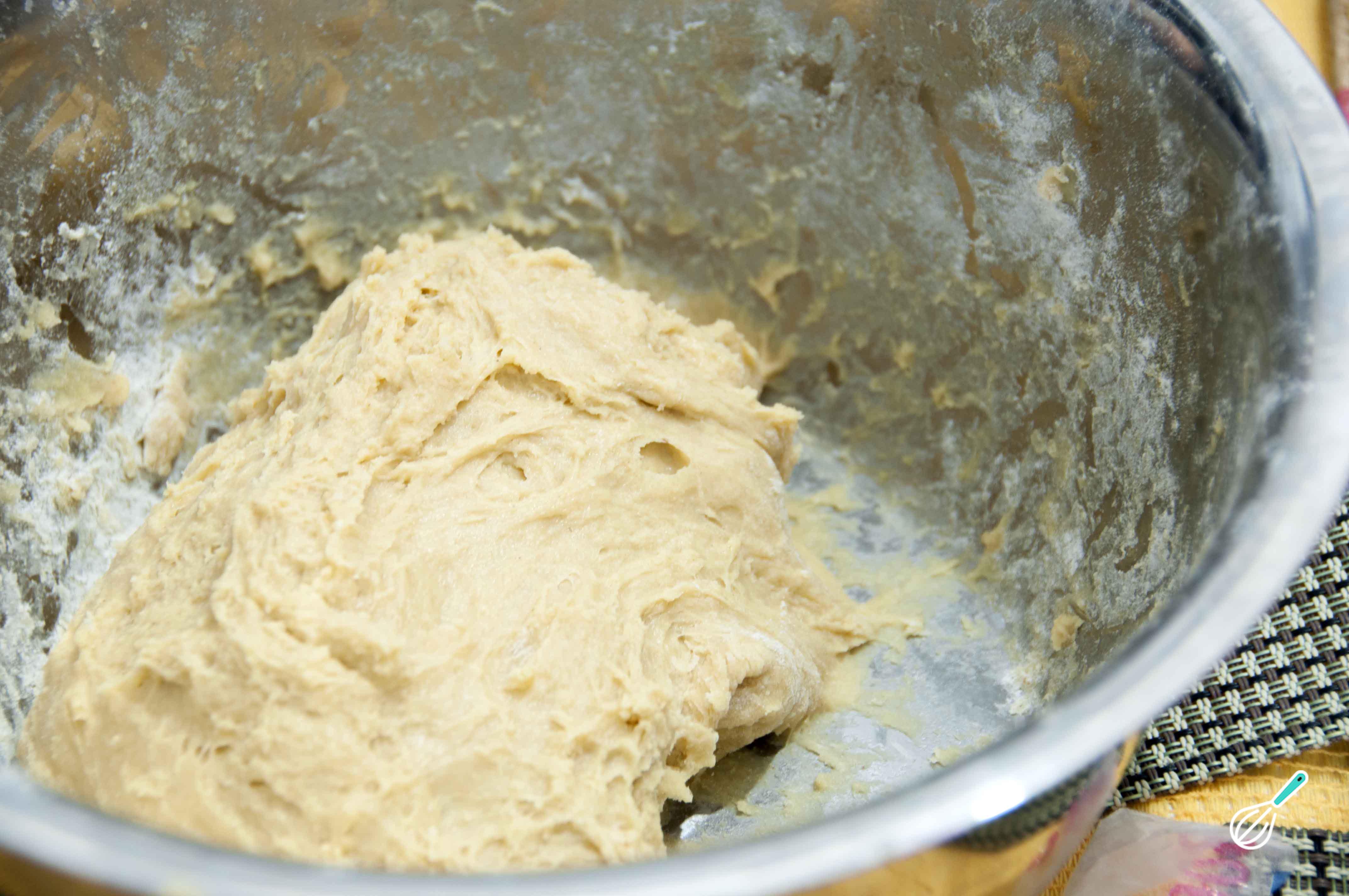 Após os 20 minutos indicados transfira a massa para a batedeira e adicione-lhe o restante açúcar, os ovos, o interior da fava de baunilha (opcional), a casca de limão, o sal e a manteiga. Bata tudo muito bem.