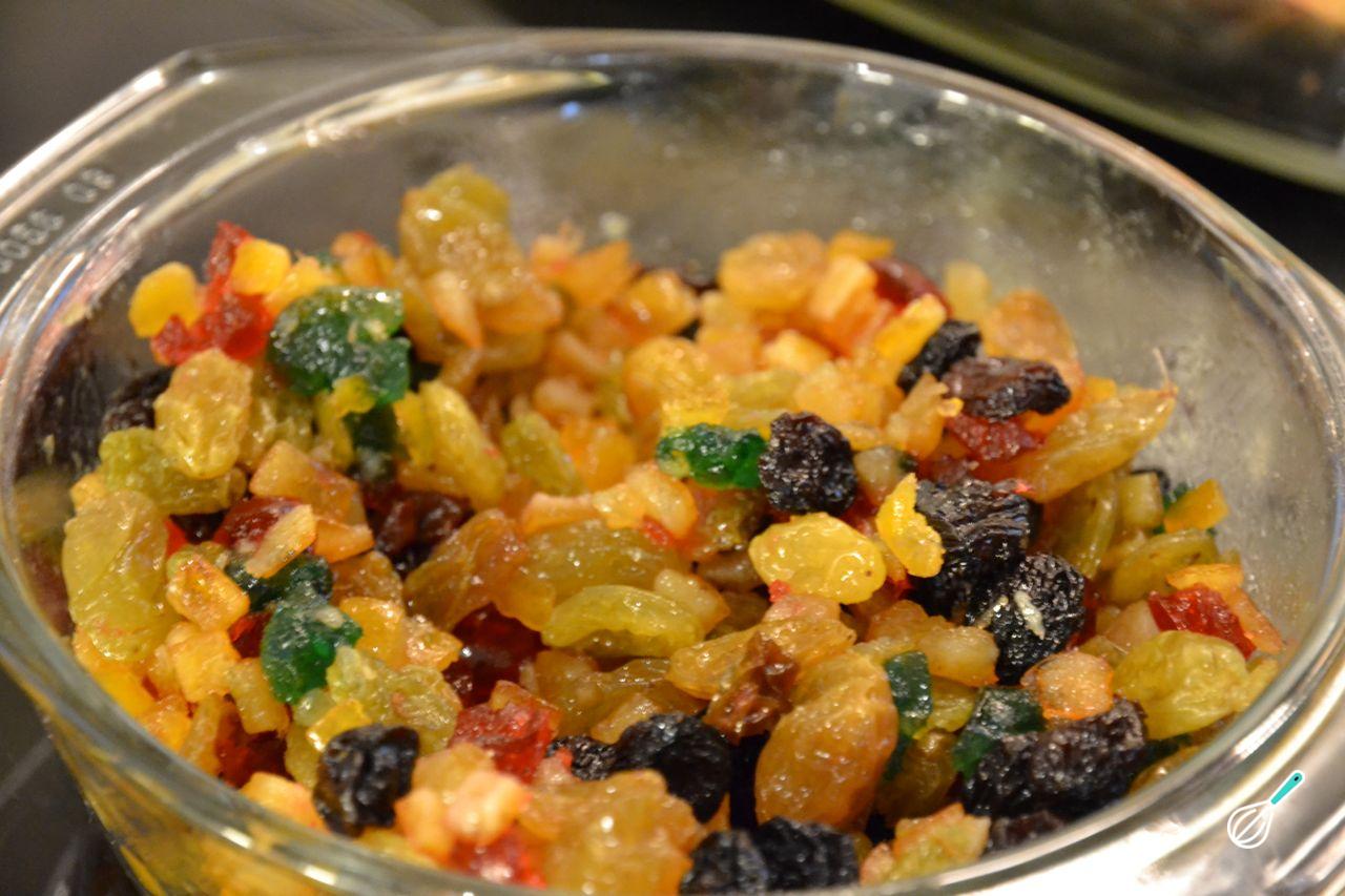 Enquanto isso coloque as frutas macerando, ou seja, coloque as uvas-passas, as amêndoas e as frutas cristalizadas em uma tigela e cubra com o rum. Deixe ficar enquanto prepara os passos seguintes.
