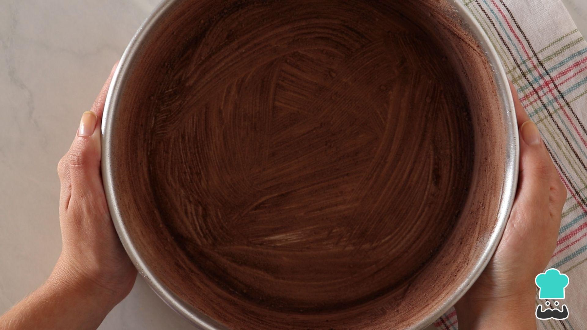 Comece untando uma forma com manteiga e cacau em pó - usando o cacau o seu bolo pão de mel não fica esbranquiçado nas laterais!