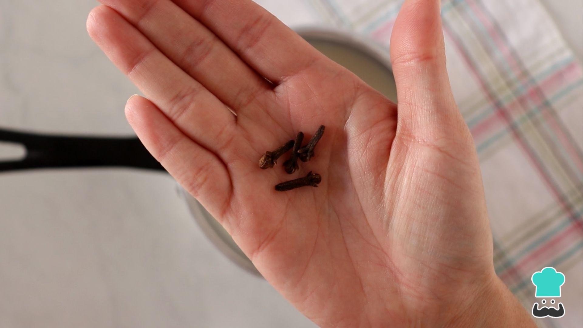 Em seguida despeje o leite em uma panela e coloque os cravos. Leve ao fogo e, quando ferver, desligue o fogo e espere esfriar completamente.