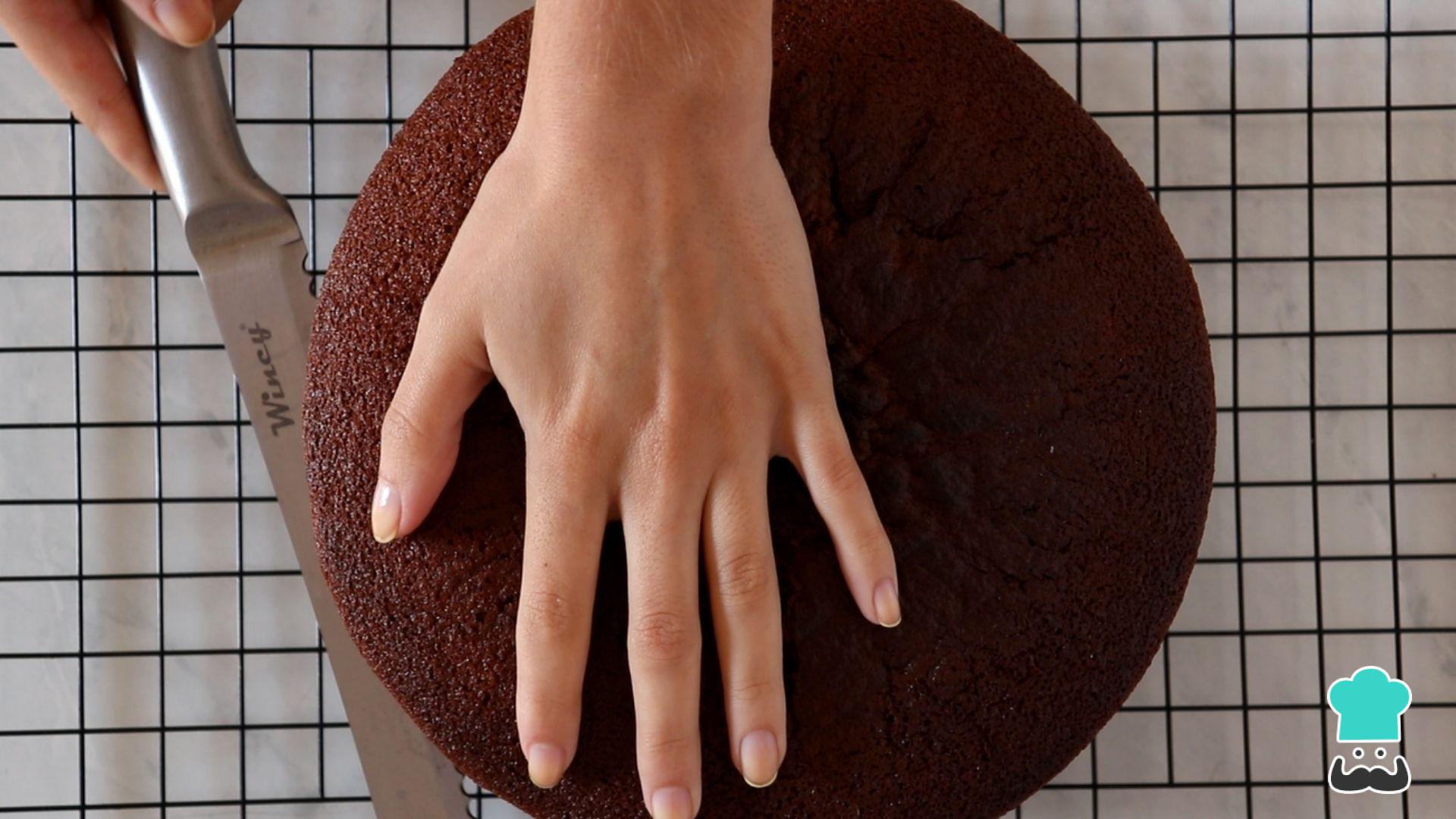 Quando o bolo estiver assado, retire do forno e espere esfriar. Depois corte-o no meio para rechear.