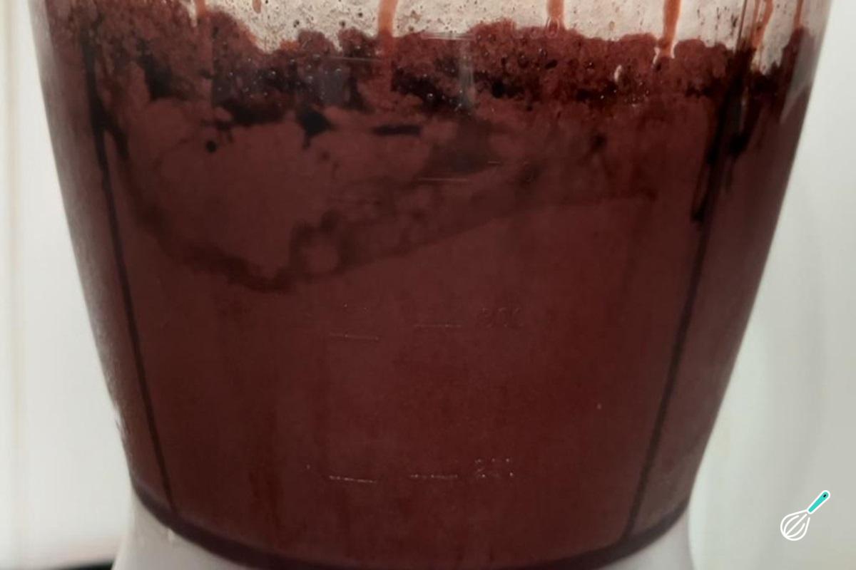 Num liquidificador, adicione os ovos um a um para garantir que nenhum esteja estragado. Em seguida junte o óleo, o leite, o açùcar e por fim, adicione o cacau em pó e o corante vermelho em gel.
