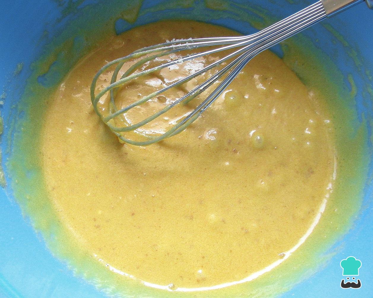 Acrescente os restantes ingredientes (com exceção das claras de ovo) e misture manualmente até ficar homogêneo. Deixe repousar por 1-2 minutos, assim o bicarbonato de sódio vai ativar e fazer o bolo crescer mais!