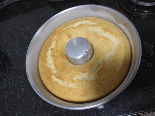 Coloque a massa em uma forma de bolo (redonda ou retangular) untada e enfarinhada. Leve ao forno a 180ºC por 45 minutos aproximadamente. Para saber se o bolo está pronto, faça o teste do palito.