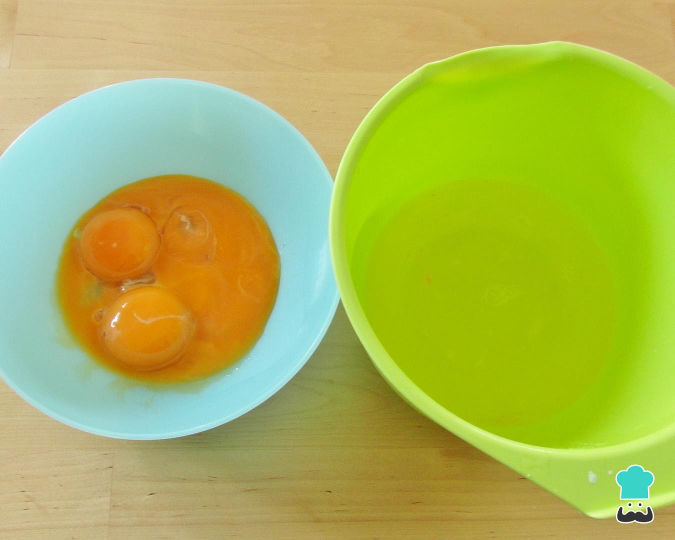 Comece por separar as claras das gemas e pré-aquecer o forno a 180°C.