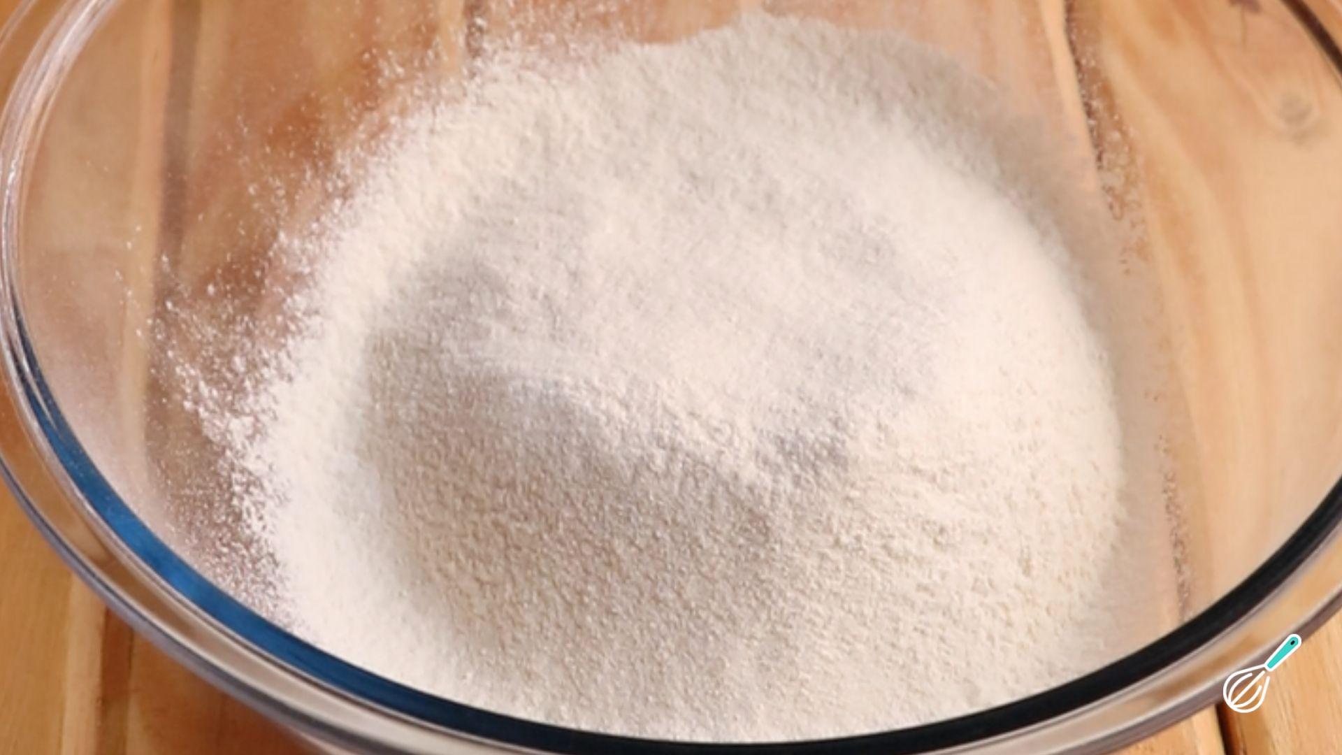 Comece mistuando os ingredientes secos - farinha, fermento e sal.
