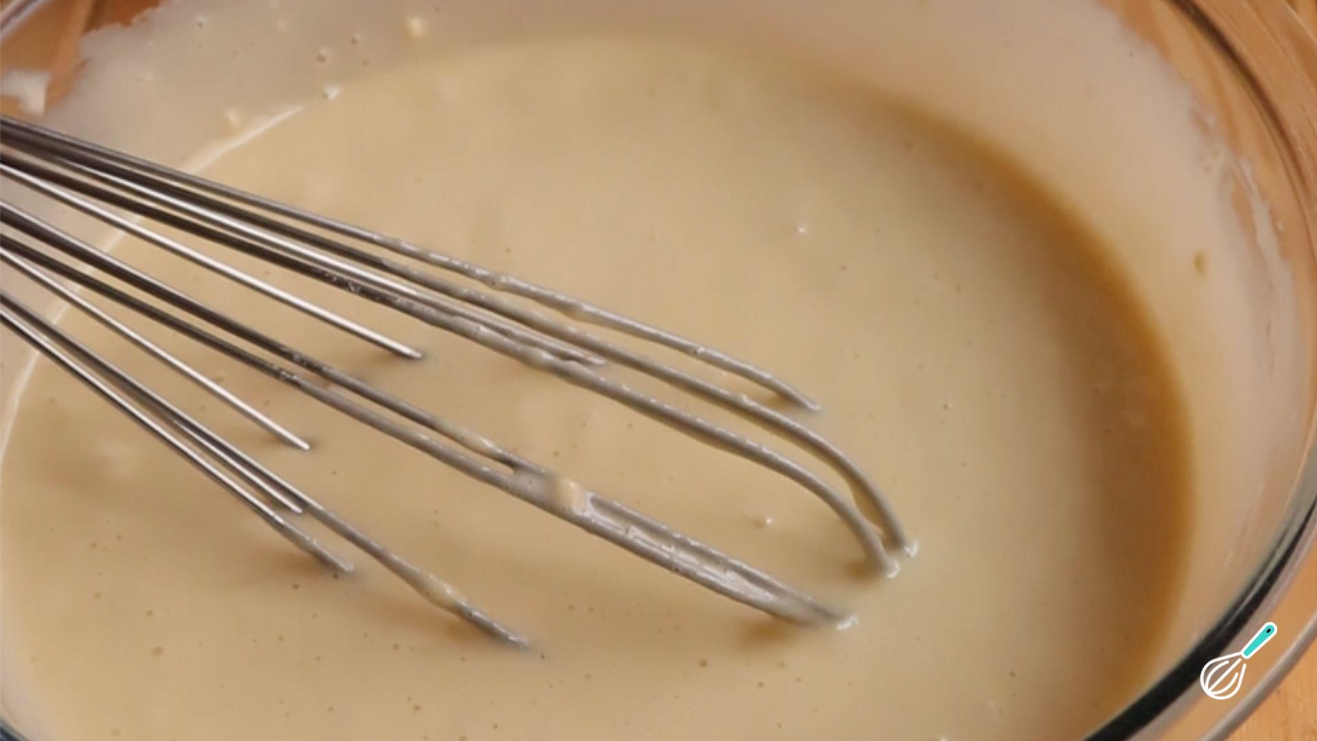 Despeje a massa do liquidificador na tigela com os ingredientes secos e misture até ficar homogêneo.
