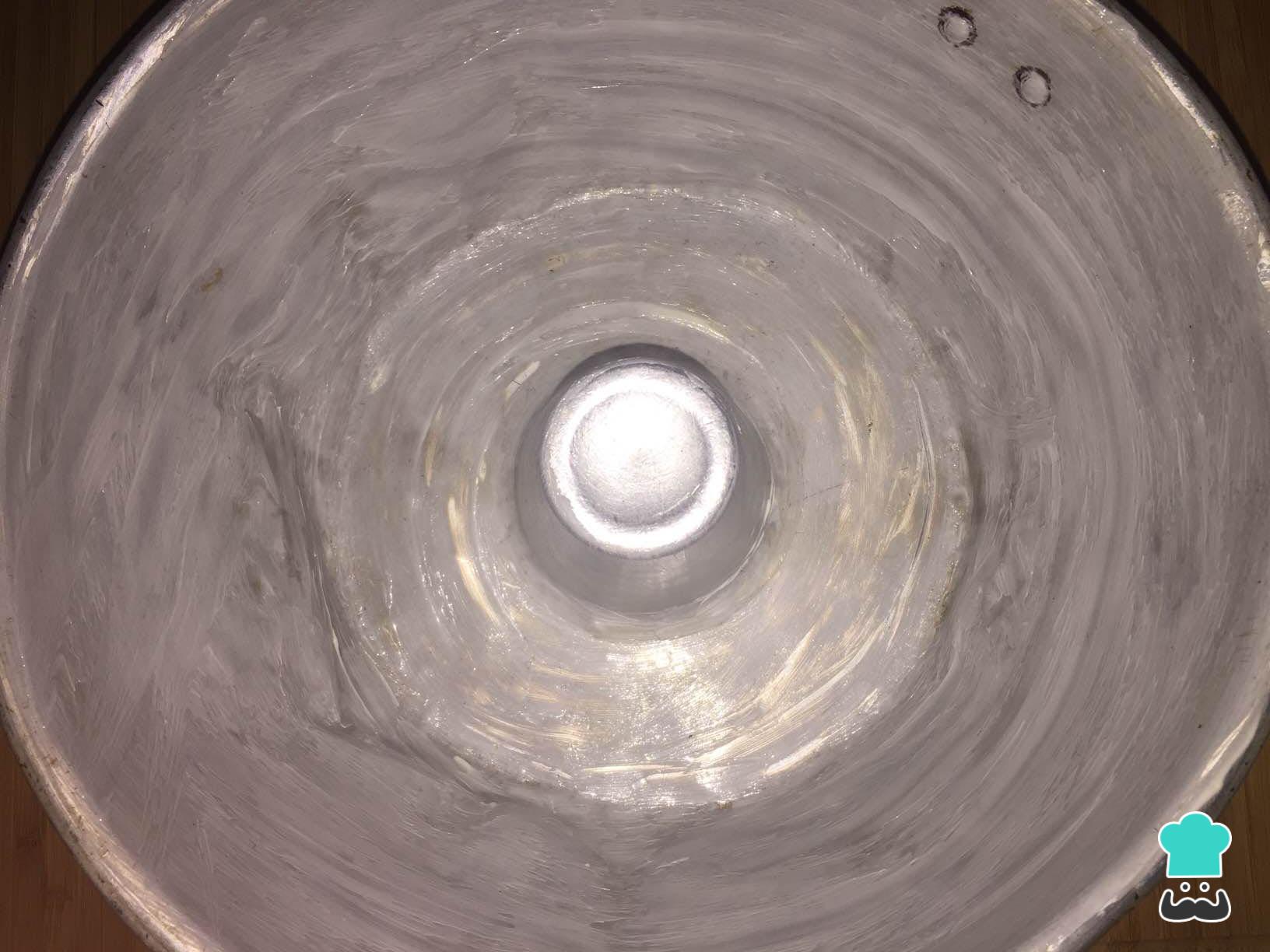 Unte e enfarinhe uma forma com buraco.