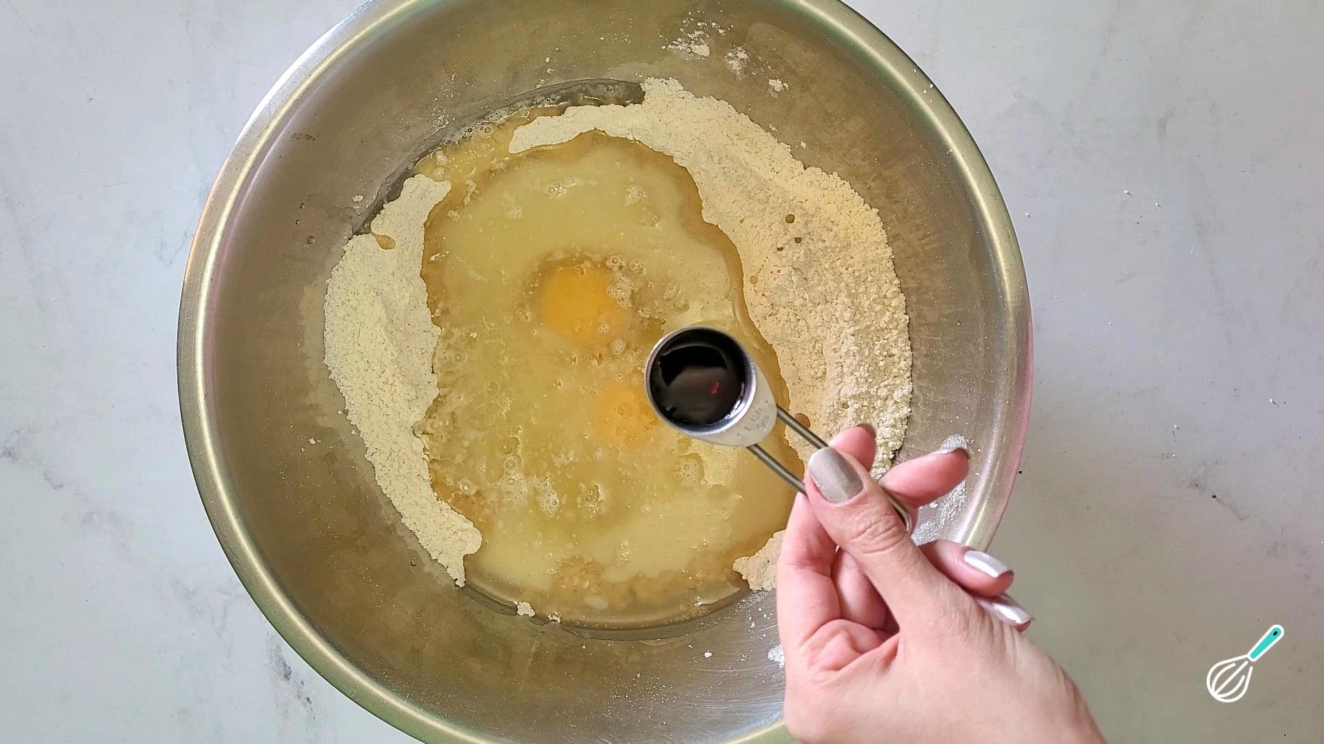 Dica: A baunilha dá um aroma gostoso no bolo, mas ela é opcional. Se não tiver, você pode substituir por um pouco de canela, por exemplo.