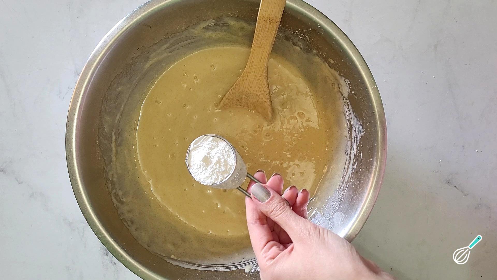 Adicione o fermento em pó e mexa delicadamente para incorporar.