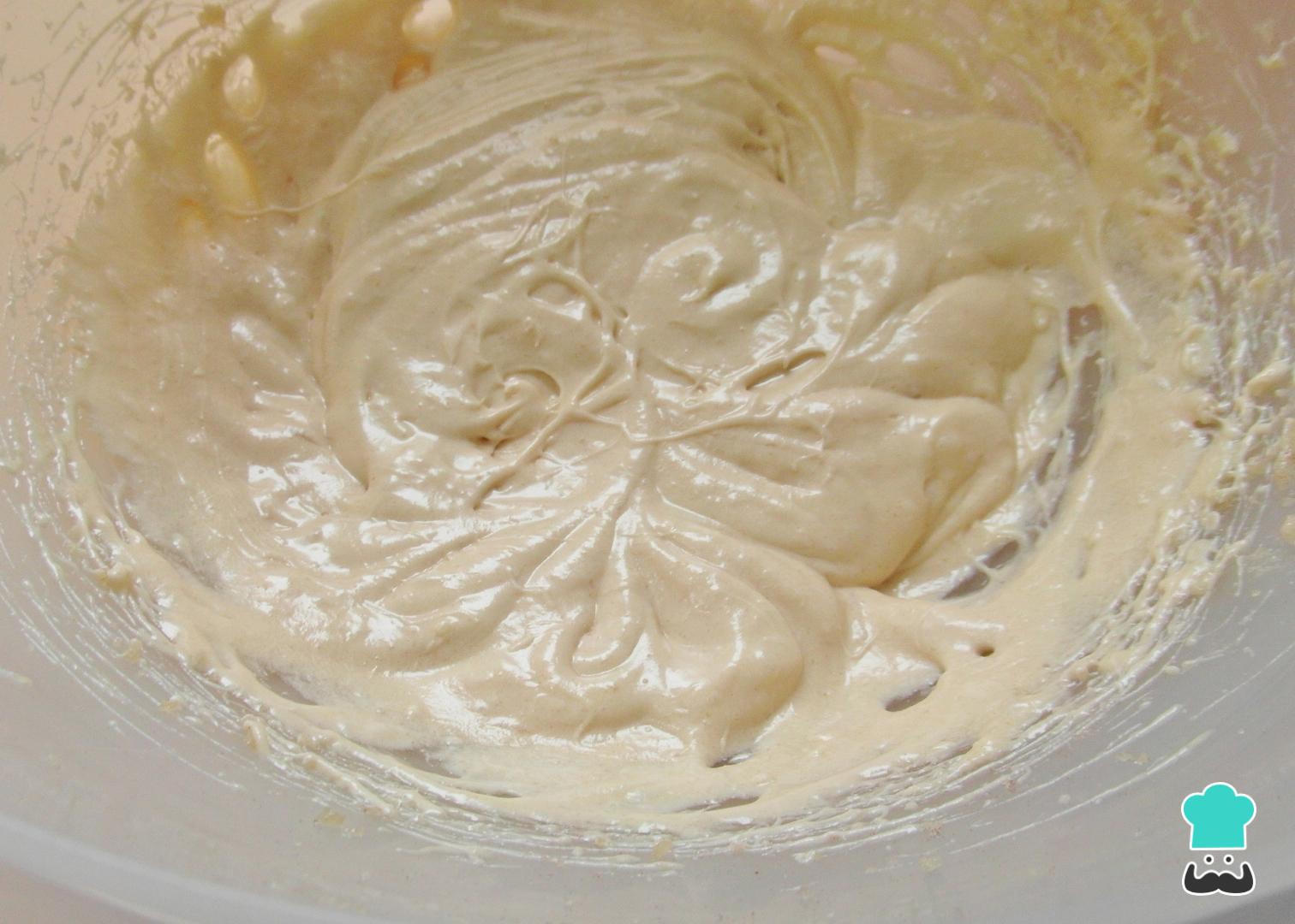Para fazer essa receita de bolo comece por ligar o forno a 180ºC e bater a manteiga com o açúcar até virar um creme bem suave. Para isso aconselhamos usar uma batedeira elétrica ou planetária.