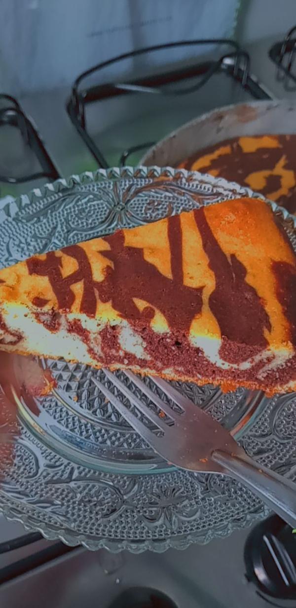 Cuidadosamente (para que as camadas de massa não se misturem), leve ao forno preaquecido a 180ºC e asse por 40 minutos, ou até passar no teste do palito. Depois é só esperar que esfrie, desenformar e, se quiser, cobrir com ganache de chocolate.