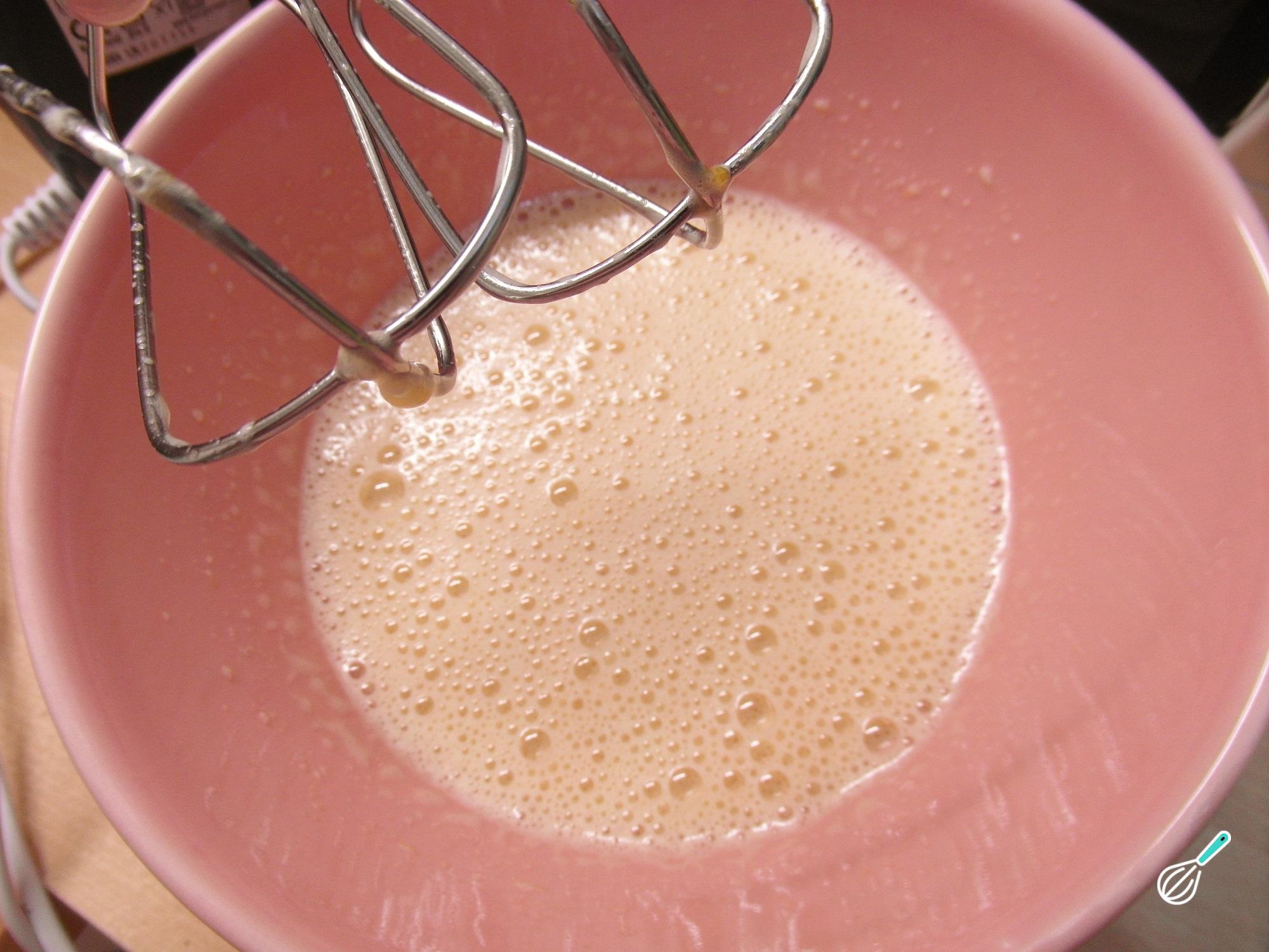 Para fazer esta receita de bolo zebra, o primeiro passo é bater os ovos e o açúcar, de preferência com uma batedeira elétrica, por 2-3 minutos.