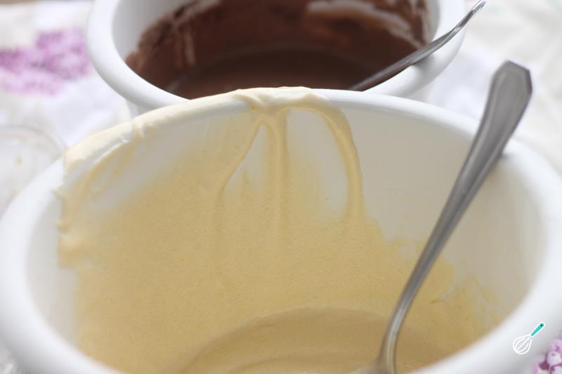 Separe a massa em duas porções iguais e em uma delas misture o cacau. É deste jeito que você conseguirá fazer as camadas de massa branca e de massa de chocolate.