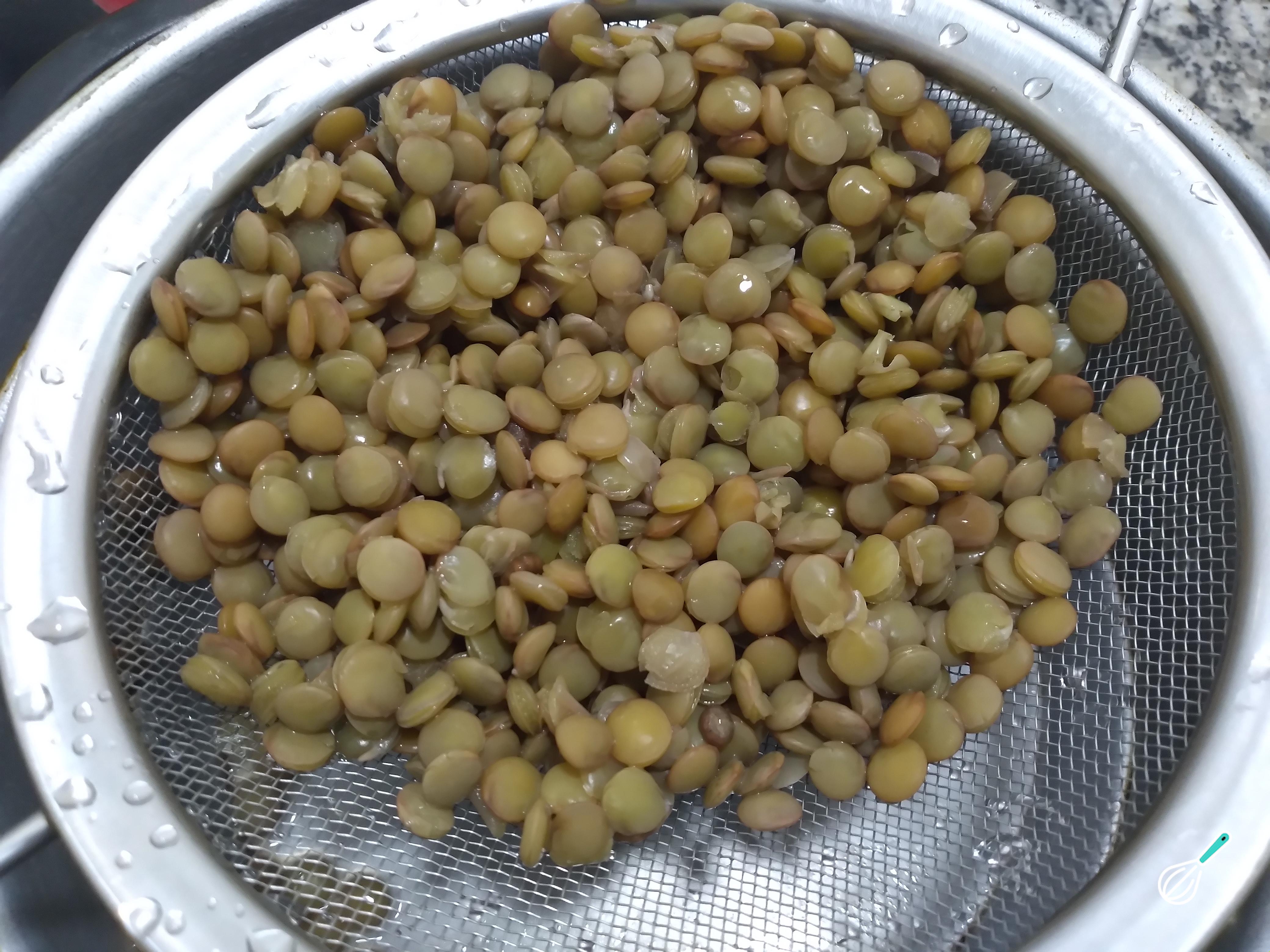 Depois de cozinhar as lentilhas, escorra em uma peneira fina. Deixe a água escorrer por completo.
