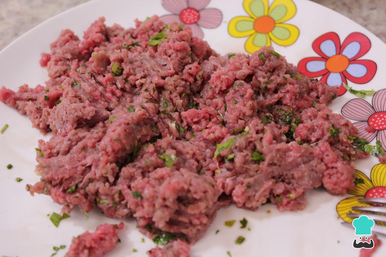 Dica: Para que a carne não grude nas mãos, polvilhe nelas um pouco de farinha.