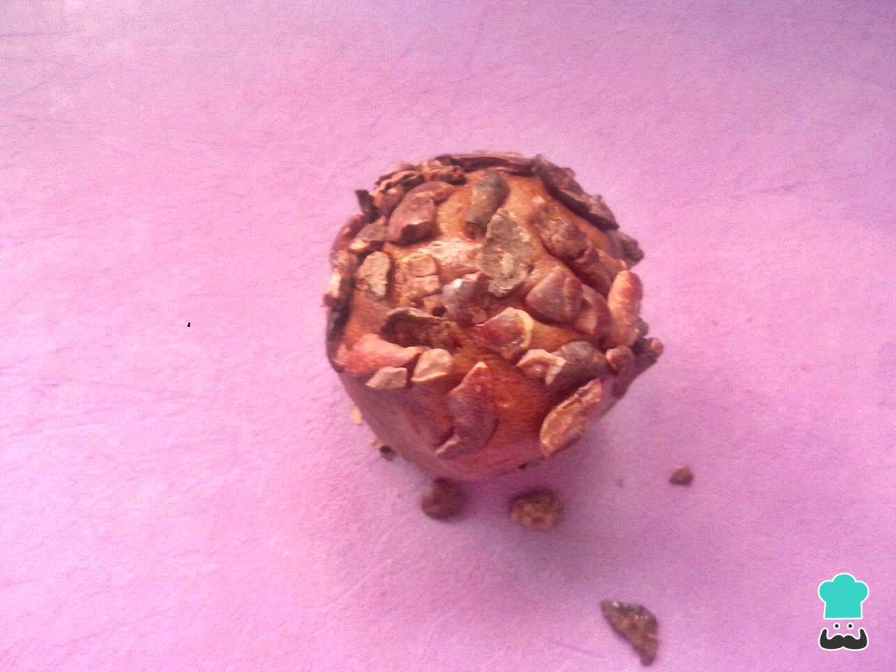 Feche o bombom e, por fim, fim passe nos nibs de cacau para empanar.