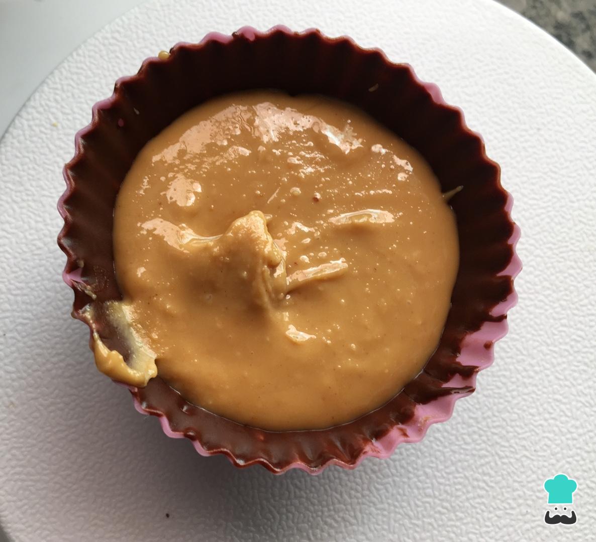 Derreta o chocolate com o óleo de coco e forre a forminhas de cupcake com ele, cobrindo o fundo e as laterais. Leve para o congelador até endurecer e, enquanto isso, misture o xylitol com a pasta de amendoim.
