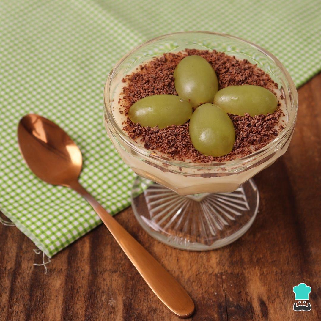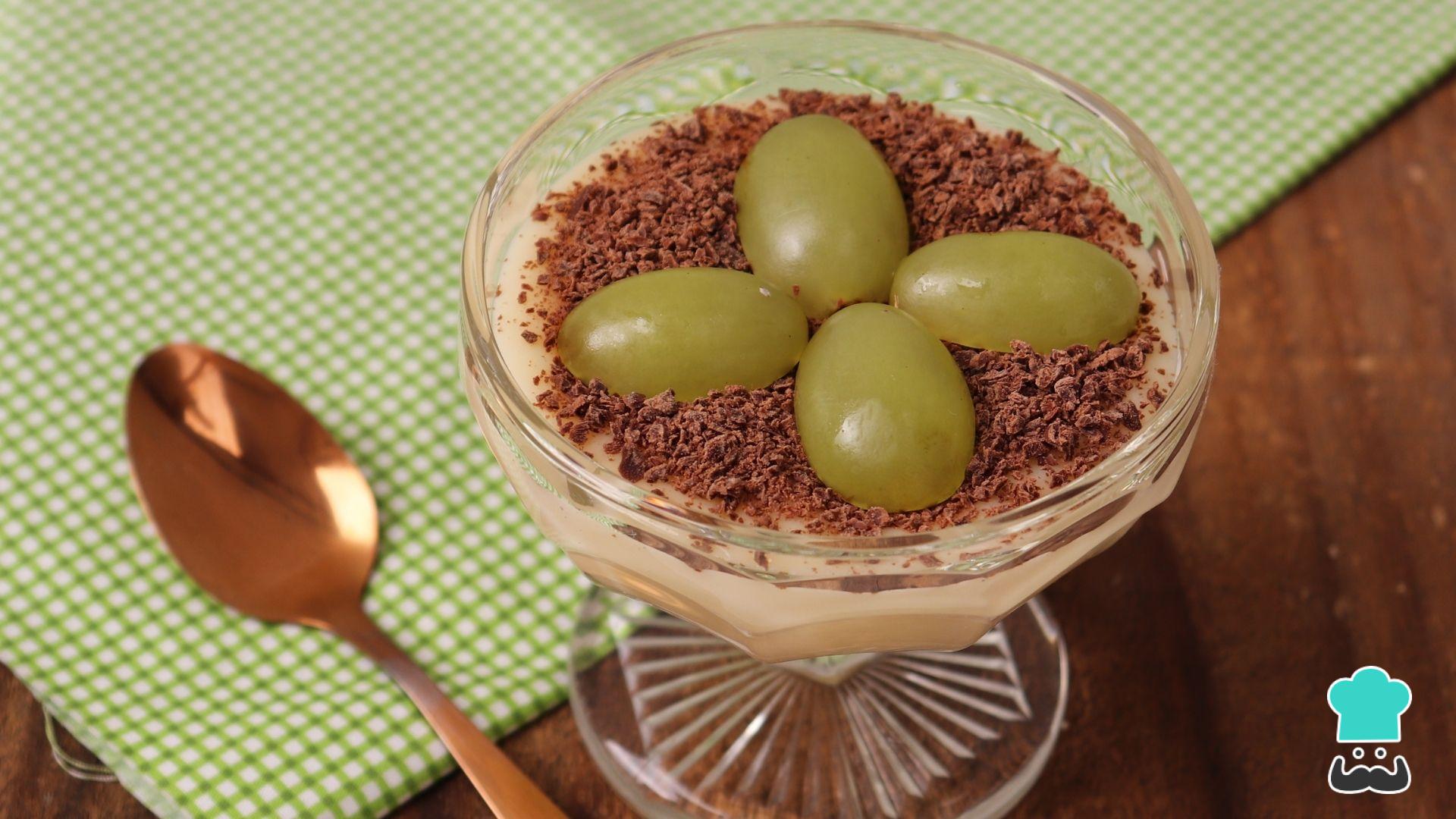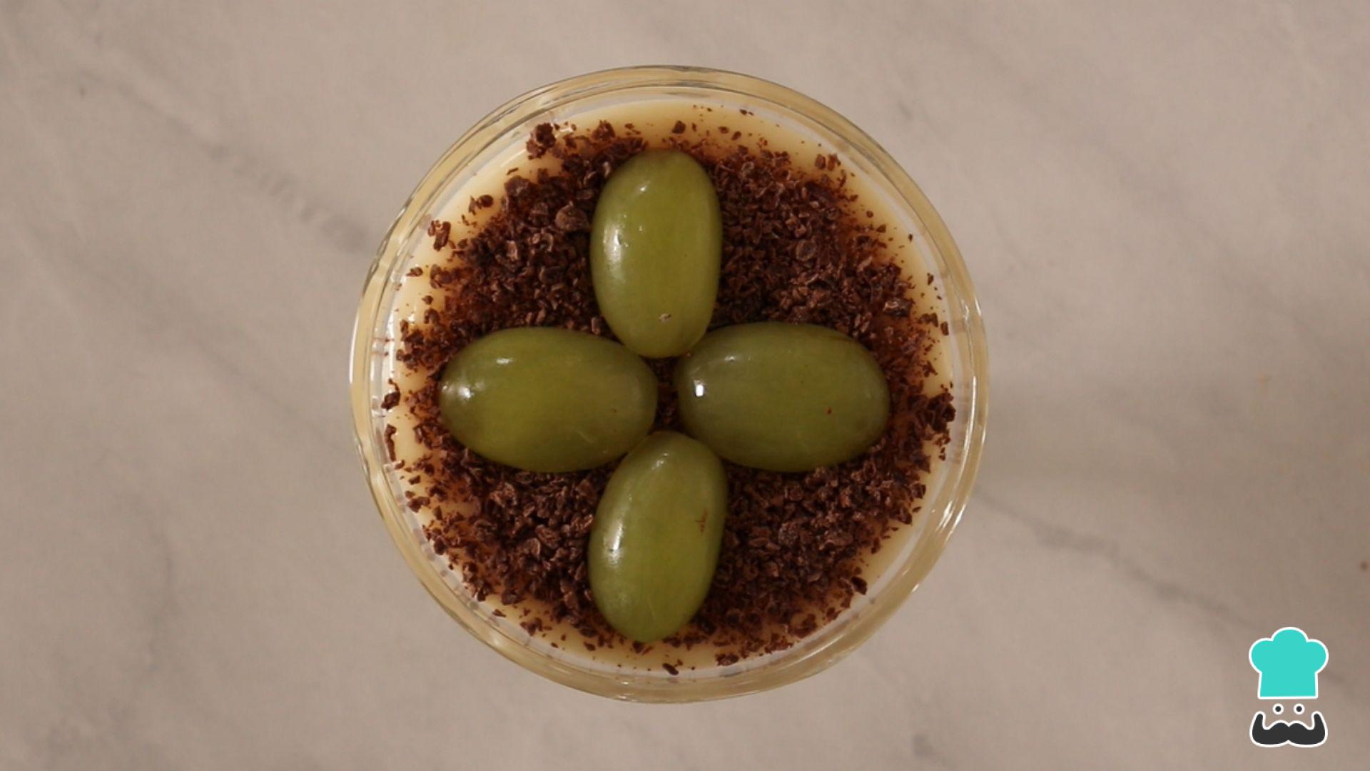 Coloque as uvas sem caroço decorando a sobremesa da forma que desejar. Leve à geladeira até a hora de servir.