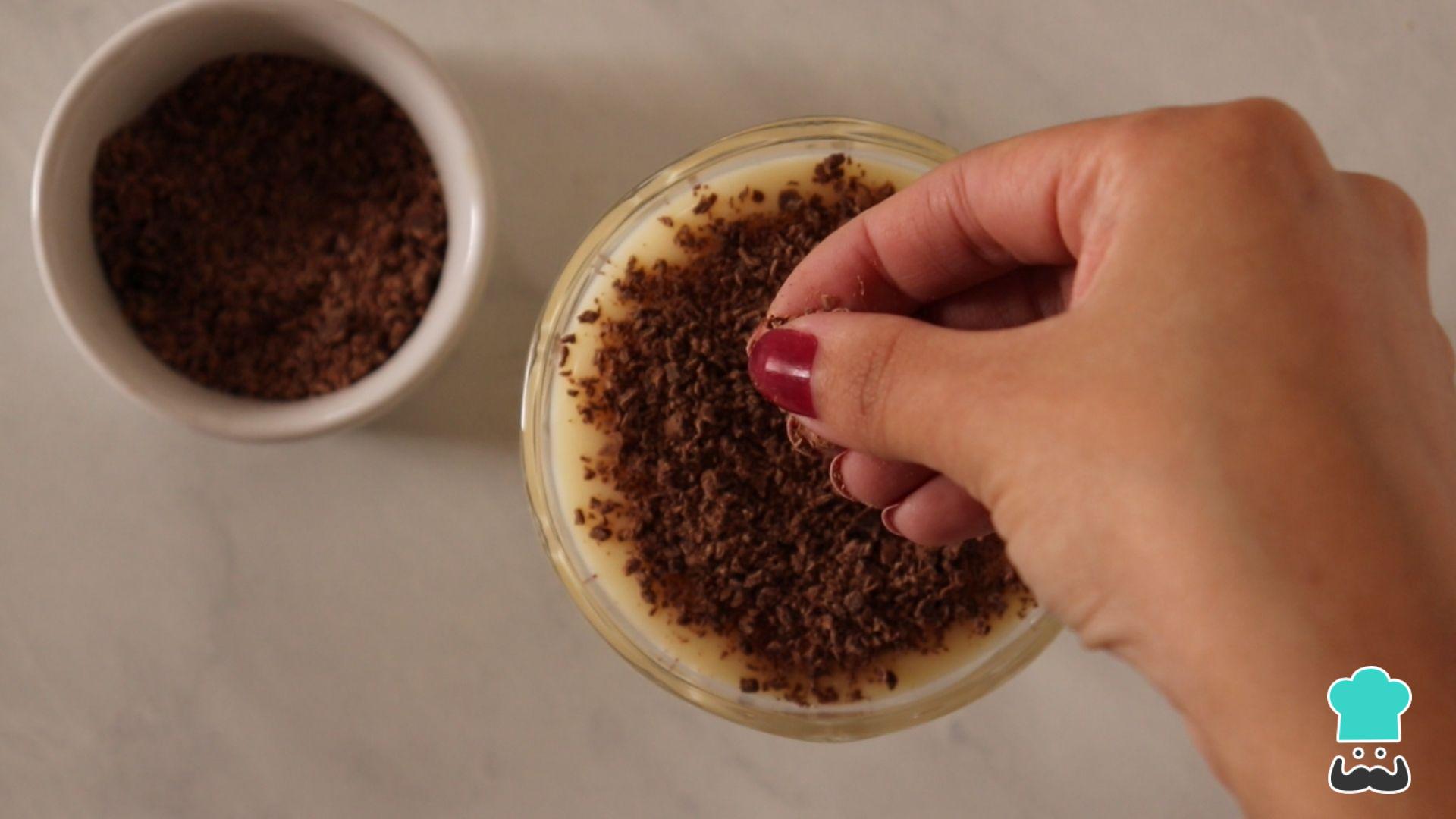 Com o creme já frio, adicione o chocolate ralado no topo.