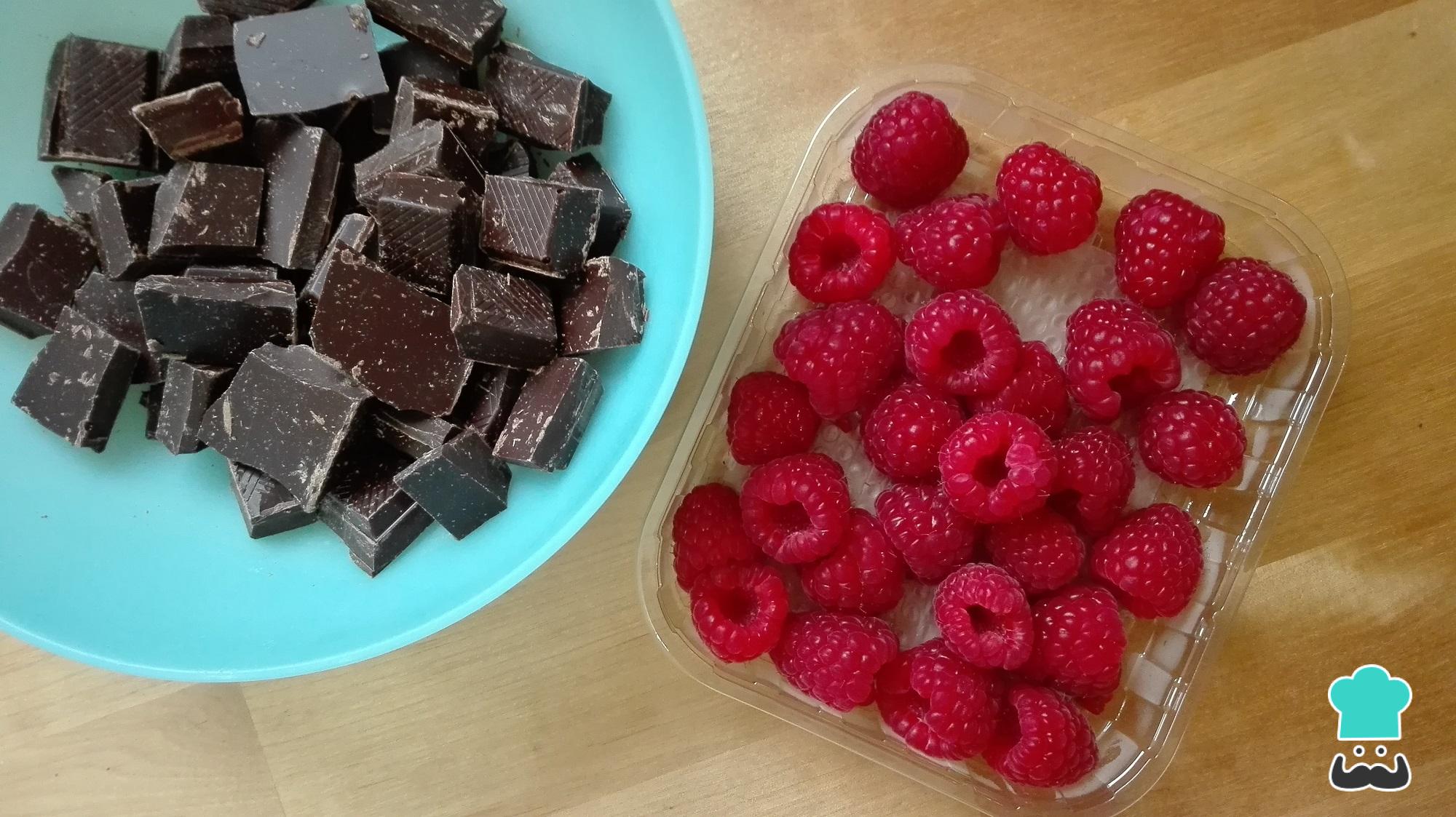 É bem simples preparar esta receita de bombons de framboesa! Comece por reunir os ingredientes.