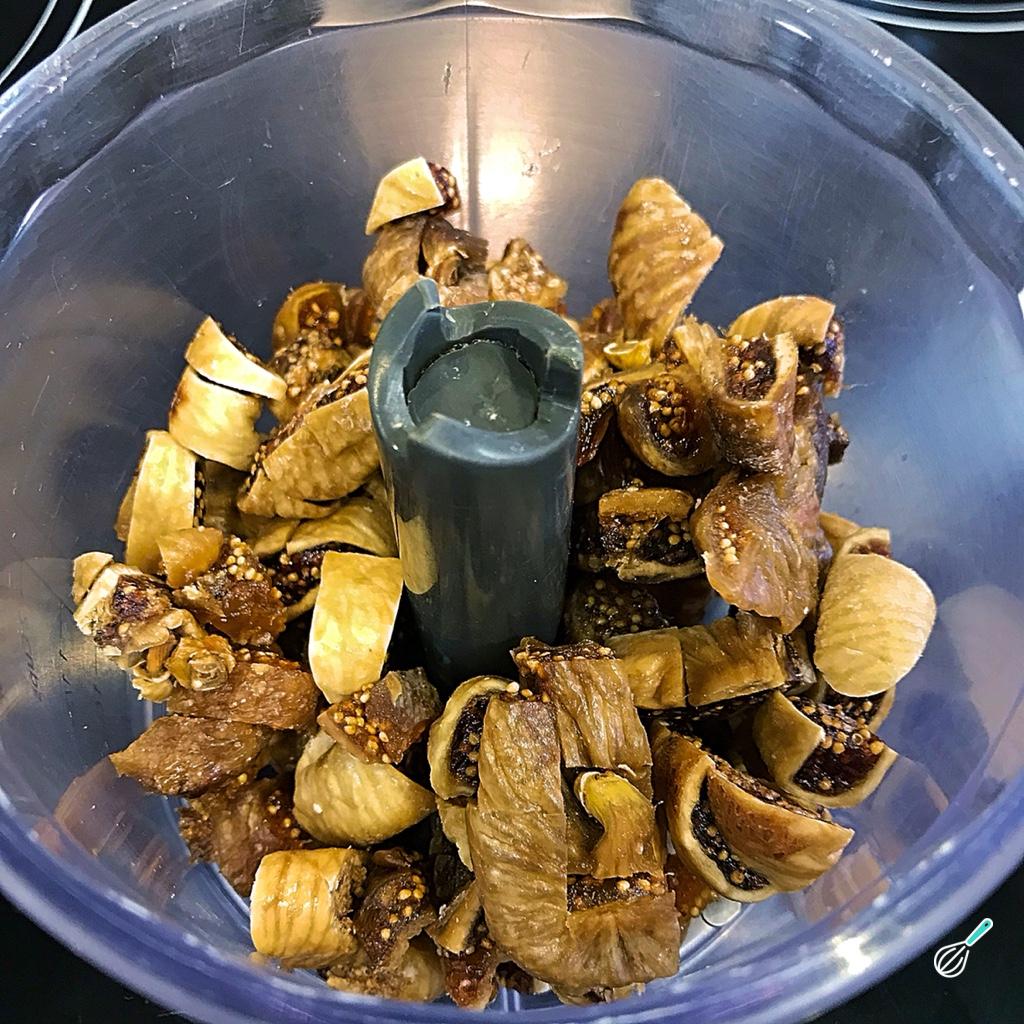 Comece processando o figo turco seco até que ele vire uma pasta.