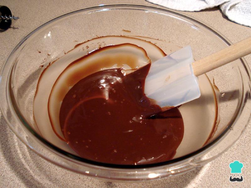 Enquanto isso derreta o chocolate ao leite da mesma forma que fez com o branco.