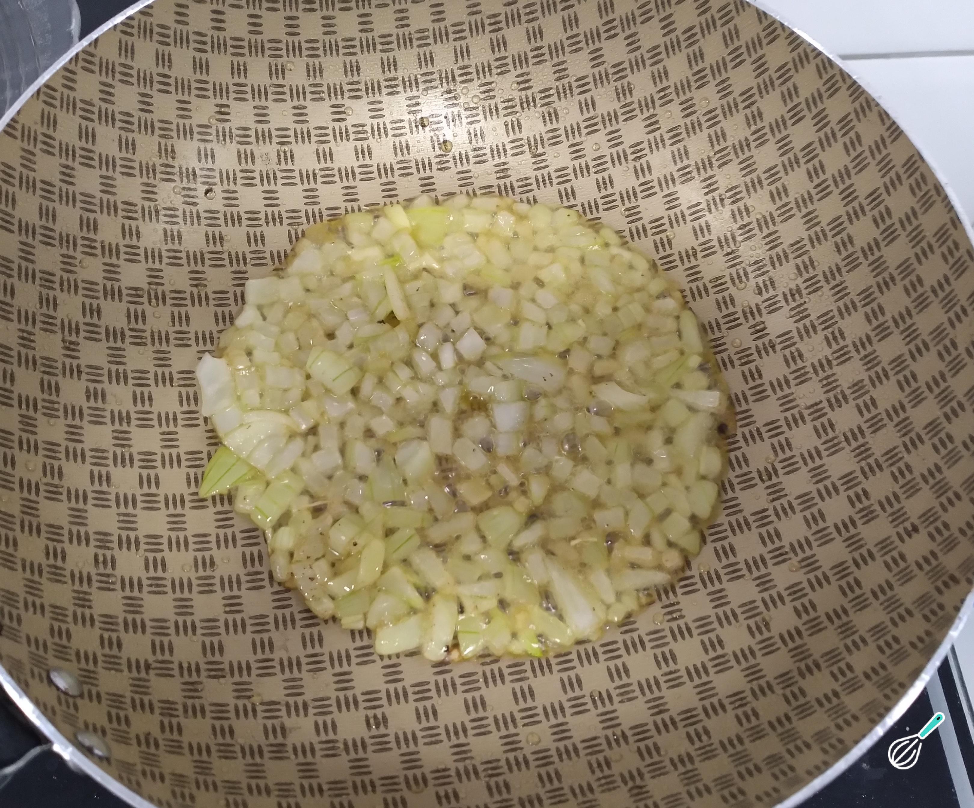 Dica: Mexa bem a cebola e cenoura para que não agarrem ao fundo da panela.