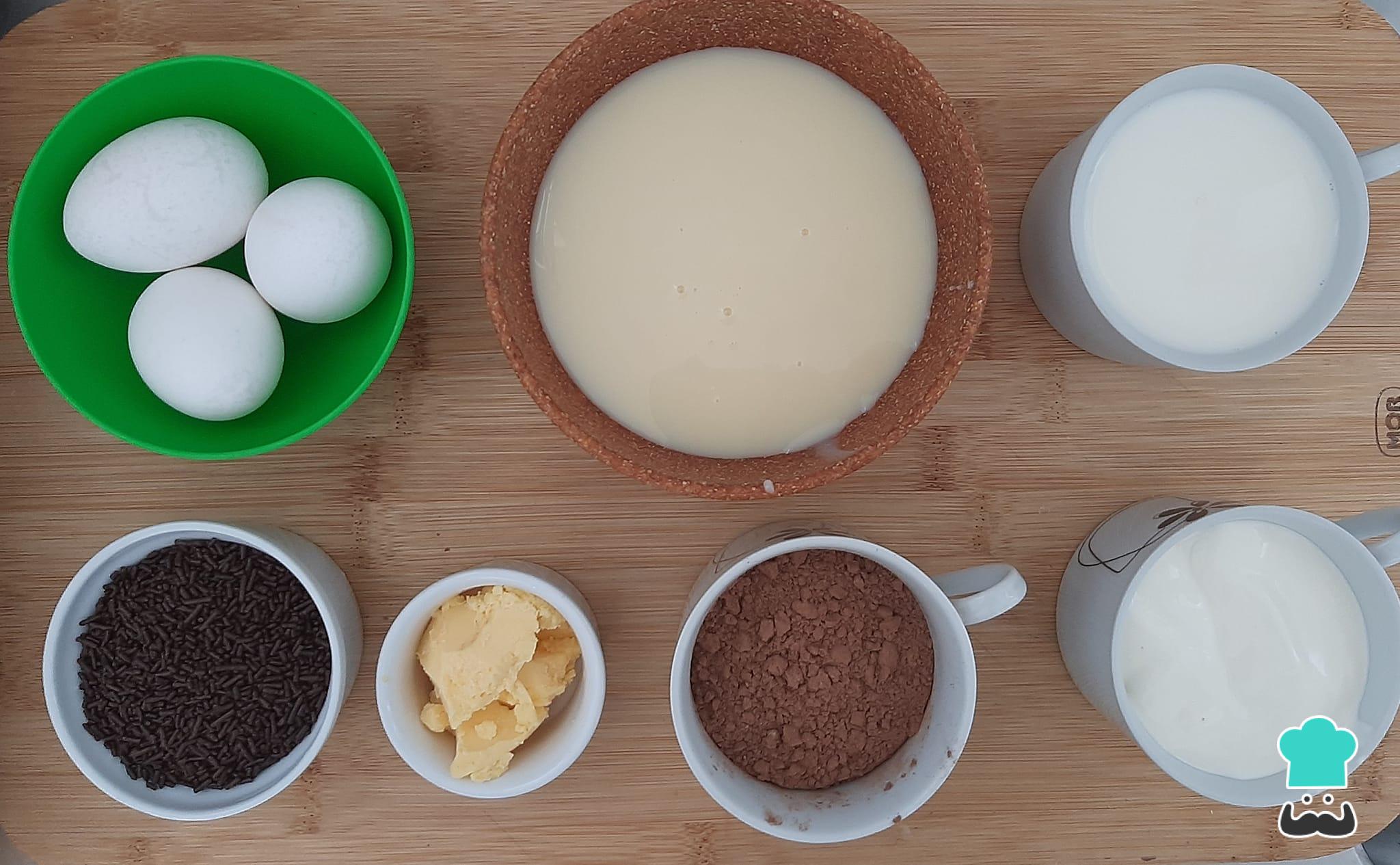 Separe os ingredientes necessários para preparar esta receita de brigadeirão de panela.