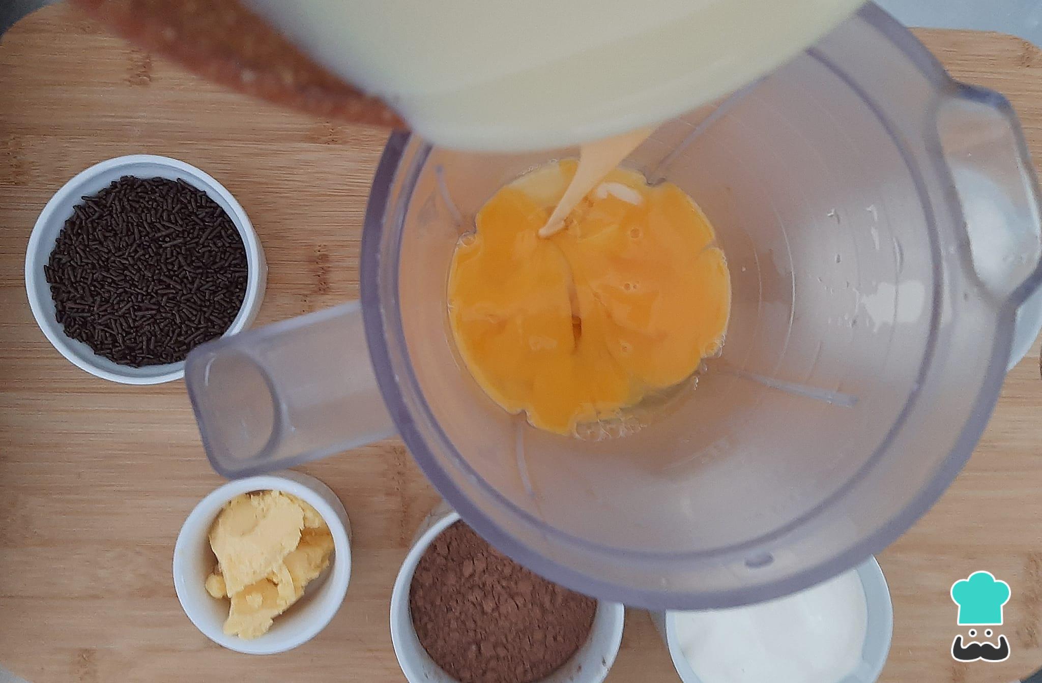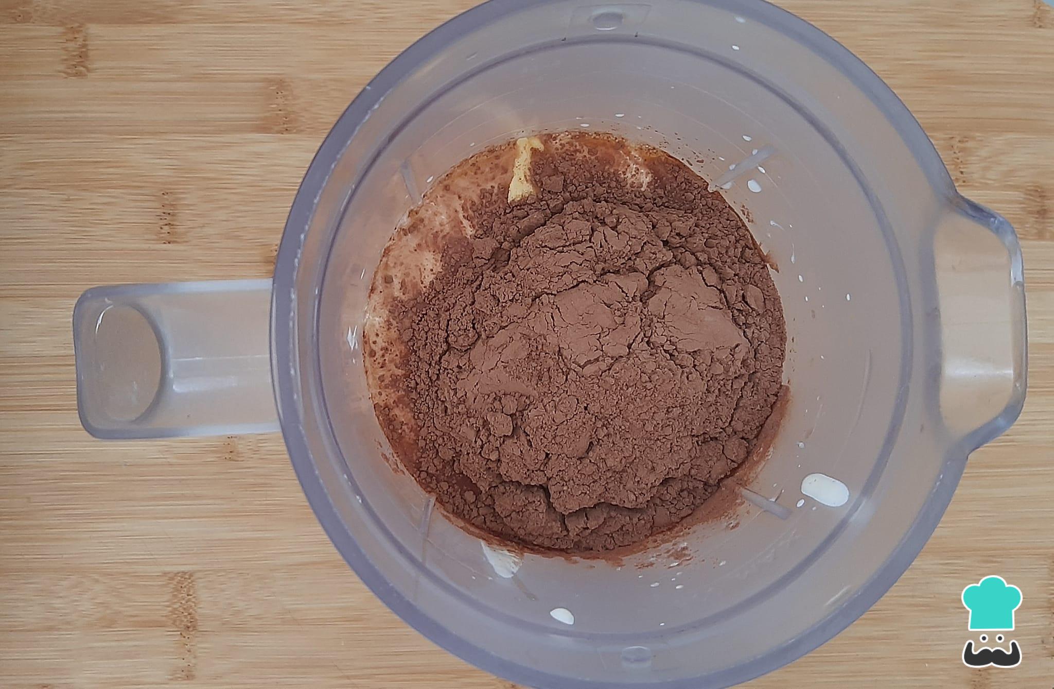Adicione também a manteiga, o creme de leite, o leite líquido e o chocolate em pó, batendo tudo até ficar homogêneo.