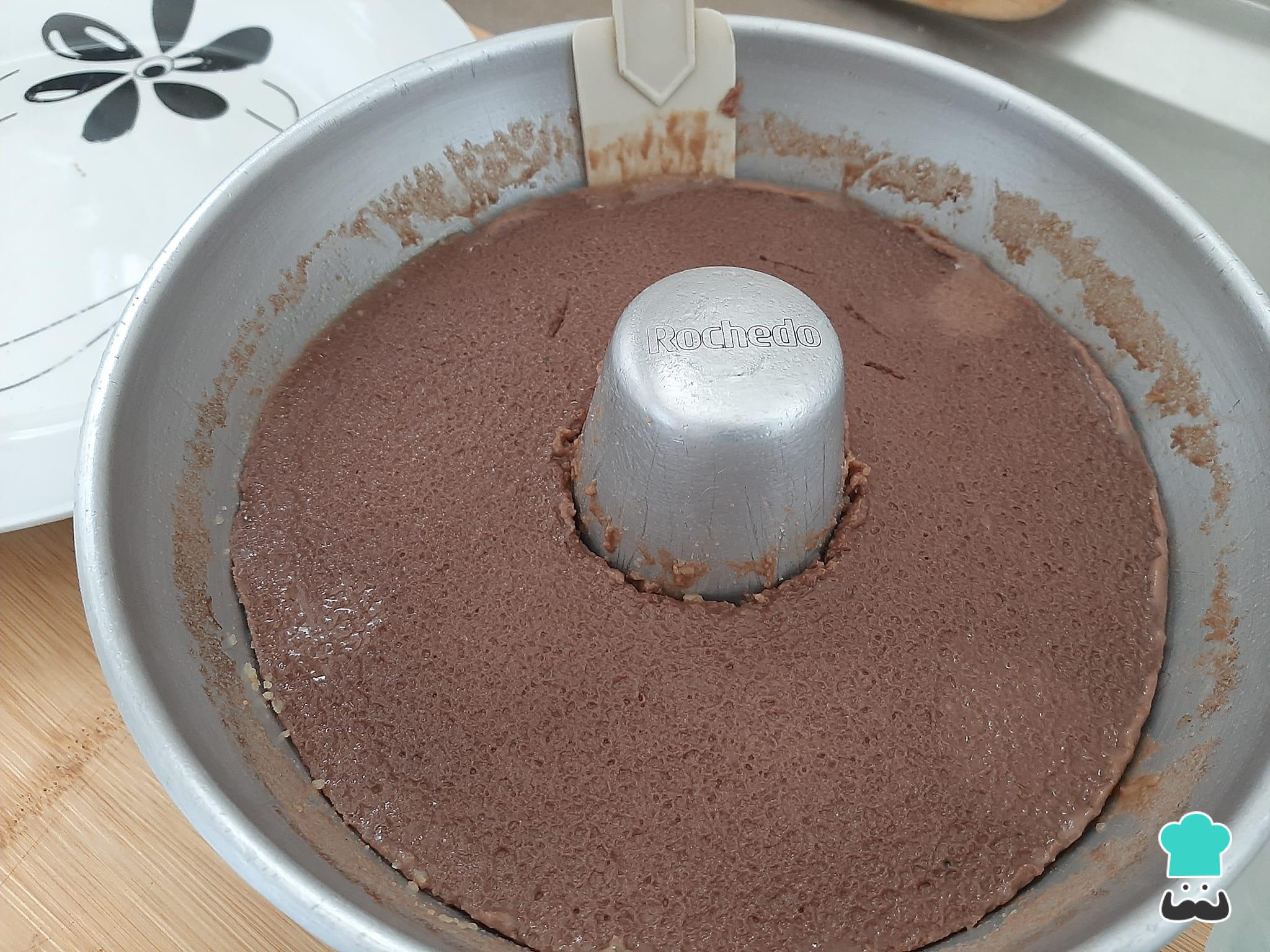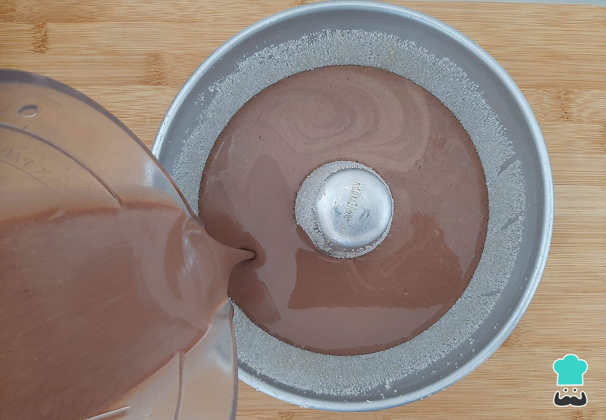 Transfira esse líquido para uma forma com um furo central (18cm de diâmetro), untada com manteiga e polvilhada com açúcar.