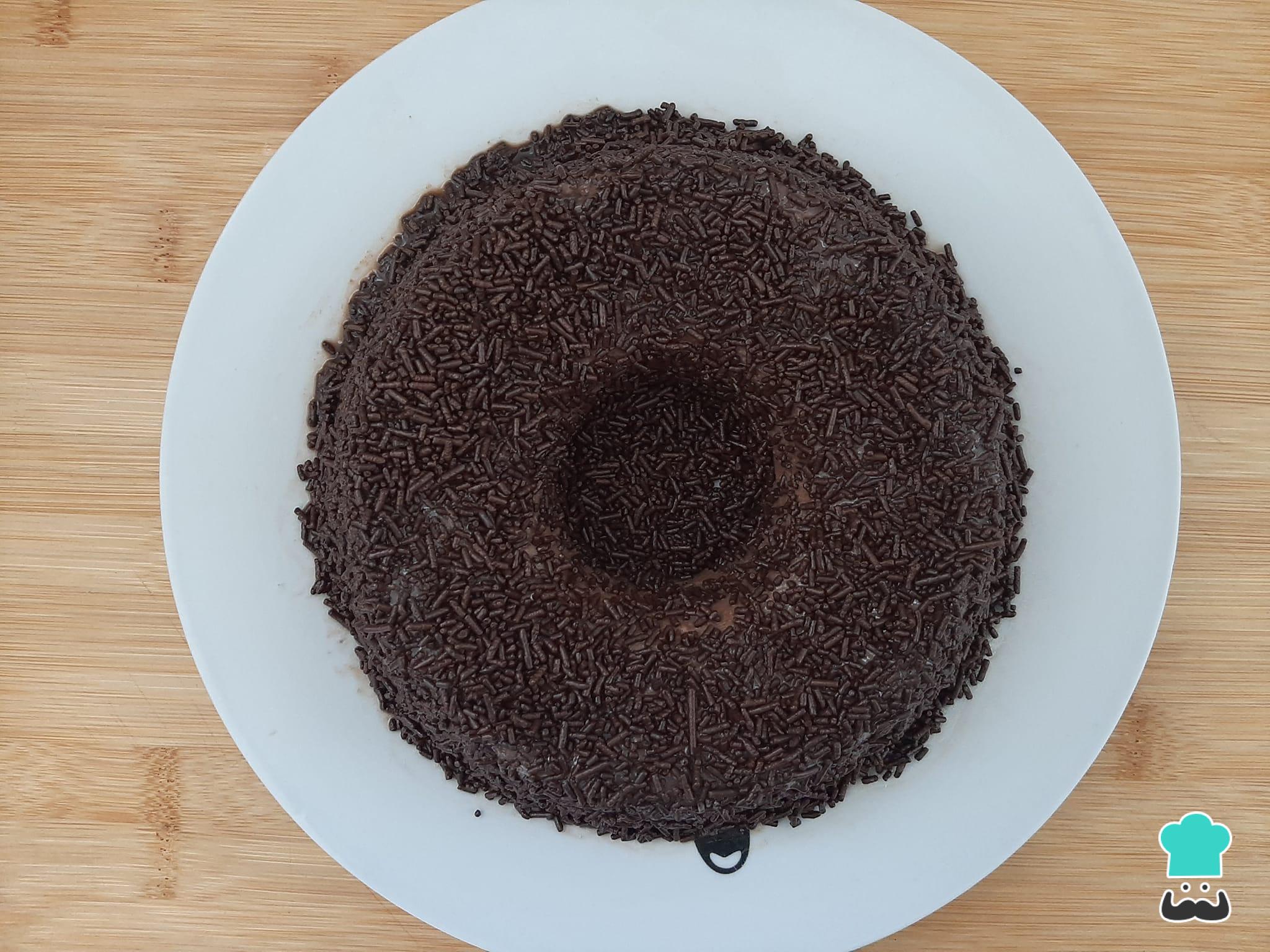 Com o brigadeirão já desenformado, decore-o com chocolate granulado e deixe-o na geladeira até a hora de servir.