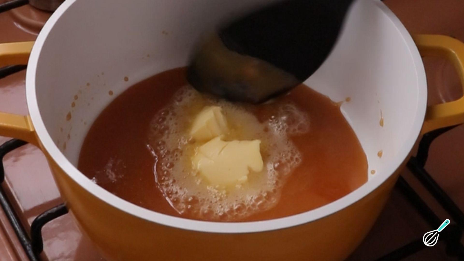 Junte a manteiga e misture - o caramelo vai borbulhar então muita atenção!